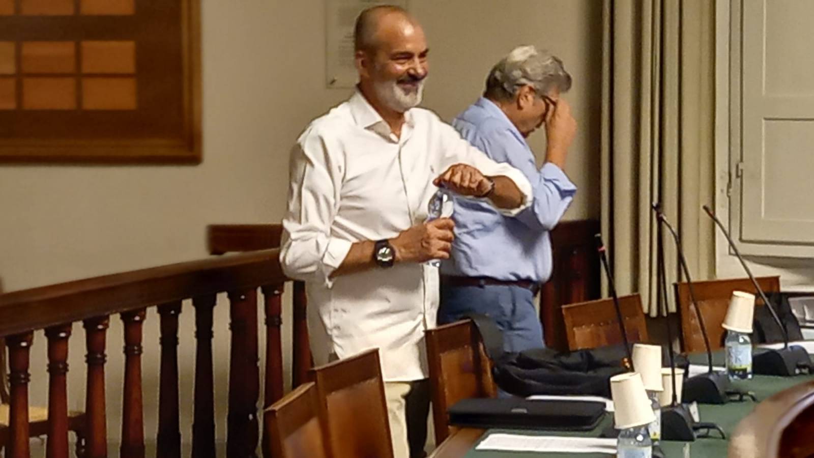 Alle 20.41 ha fatto accesso il presidente del Consiglio Comunale Enrico Torrini che si è andato subito a sedere al banco della presidenza, vicino al segretario comunale, mentre gli altri consiglieri comunali di tutti i gruppi ed il sindaco entravano alla spicciolata e andavano a prendere i loro rispettivi posti. Poi visto il caldo afoso del precedente consiglio, avvalendosi della collaborazione dei dipendenti comunali presenti si è premurato di aprire lui stesso tutte le finestre della sala e confidando sul raffrescamento serale/notturno dell’aria, ha permesso a tutti di non essere nuovamente vittime dell’afa.