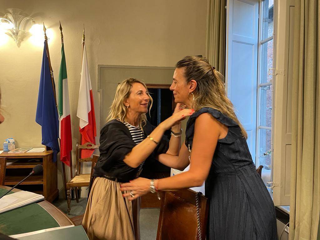 Una prima seduta all'insegna del 'fair-play' con la stretta di mano del primo cittadino all'ex candidato - oggi capogruppo di minoranza - Francesco Raspini.