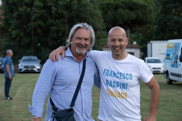 Bando alle ciance e torniamo in questa valle di lacrime dove la temperatura, invero particolarmente calda degli ultimi giorni, scende fino a 18° e, addirittura, trasmette anche una sensazione di frescura piuttosto convinta. Si celebra la festa di chiusura della campagna elettorale e Raspini, che è già stato qui ad aprile trovandosi benissimo, ha voluto raddoppiare e, probabilmente, ci ha visto giusto. Nessun caos parcheggi, aria pulita e niente smog, tranquillità, serenità e gioia nello stare insieme. Basta varcare l'ingresso del prato e alzare lo sguardo per imbattersi in volti noti della politica e dell'amministrazione verniciate di rosso. Ci sono, lo abbiamo già detto, praticamente tutti, tra attuali consiglieri e assessori e aspiranti tali.