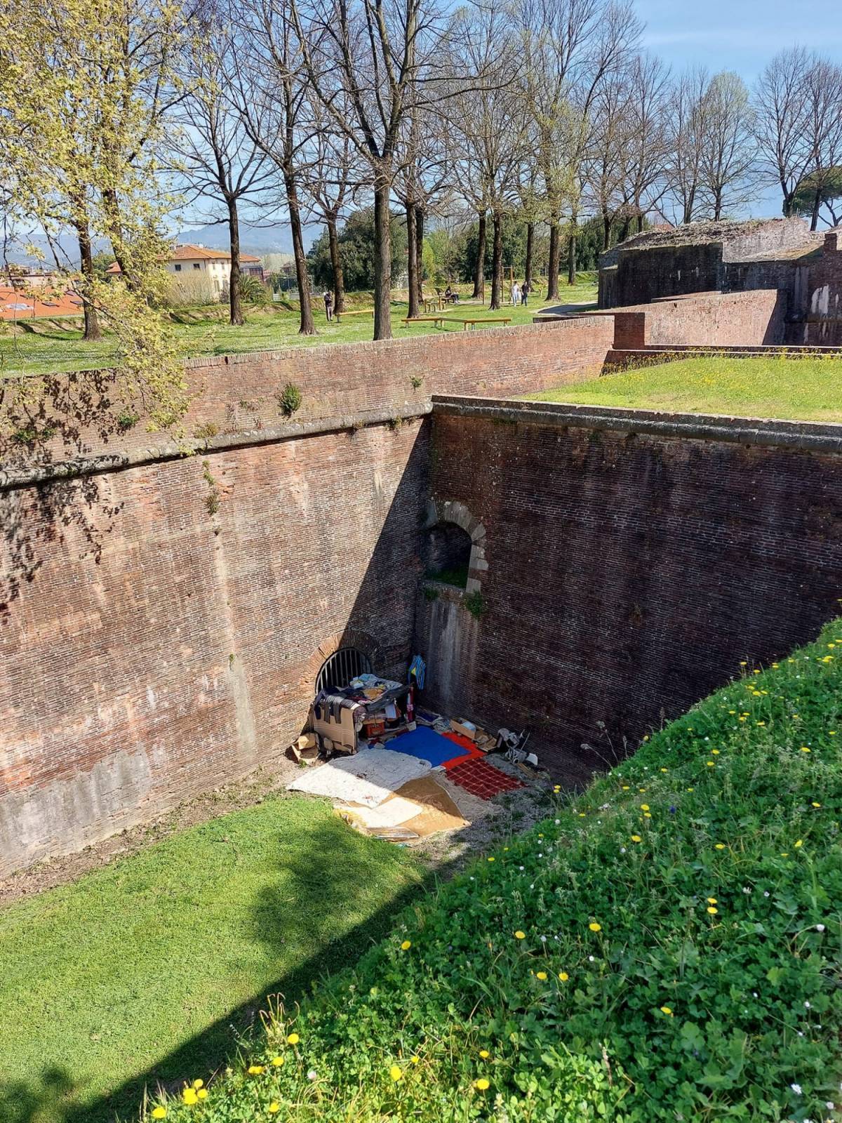 Marco Santi Guerrieri, presidente dell’associazione “Lucca ti voglio bene”, dopo il sollecito fatto già i primi giorni di questo mese alla polizia municipale alla quale richiedeva un immediato intervento, continua a domandarsi perché due anziani settantenni siano accampati da quasi un mese, nello sterrato sottostante il baluardo San Martino, subito fuori porta Santa Maria.