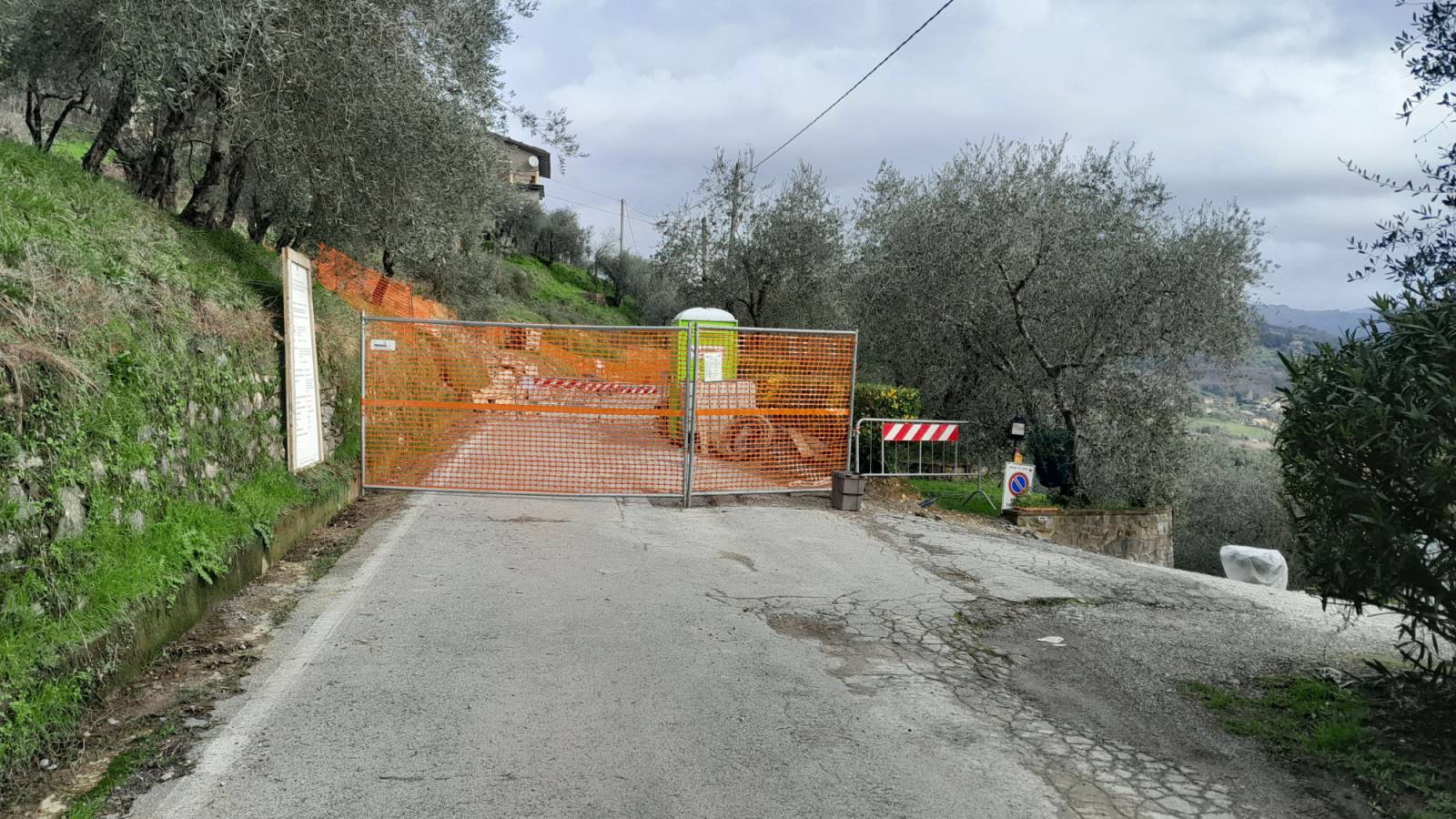 Traversa Via di Tramonte chiusa al traffico per frana, impossibile accedere alla chiesa San Martino e al cimitero della frazione, ordinanza comunale n.3042 del 26 novembre 2025 e dopo le ultime piogge situazione peggiorata;