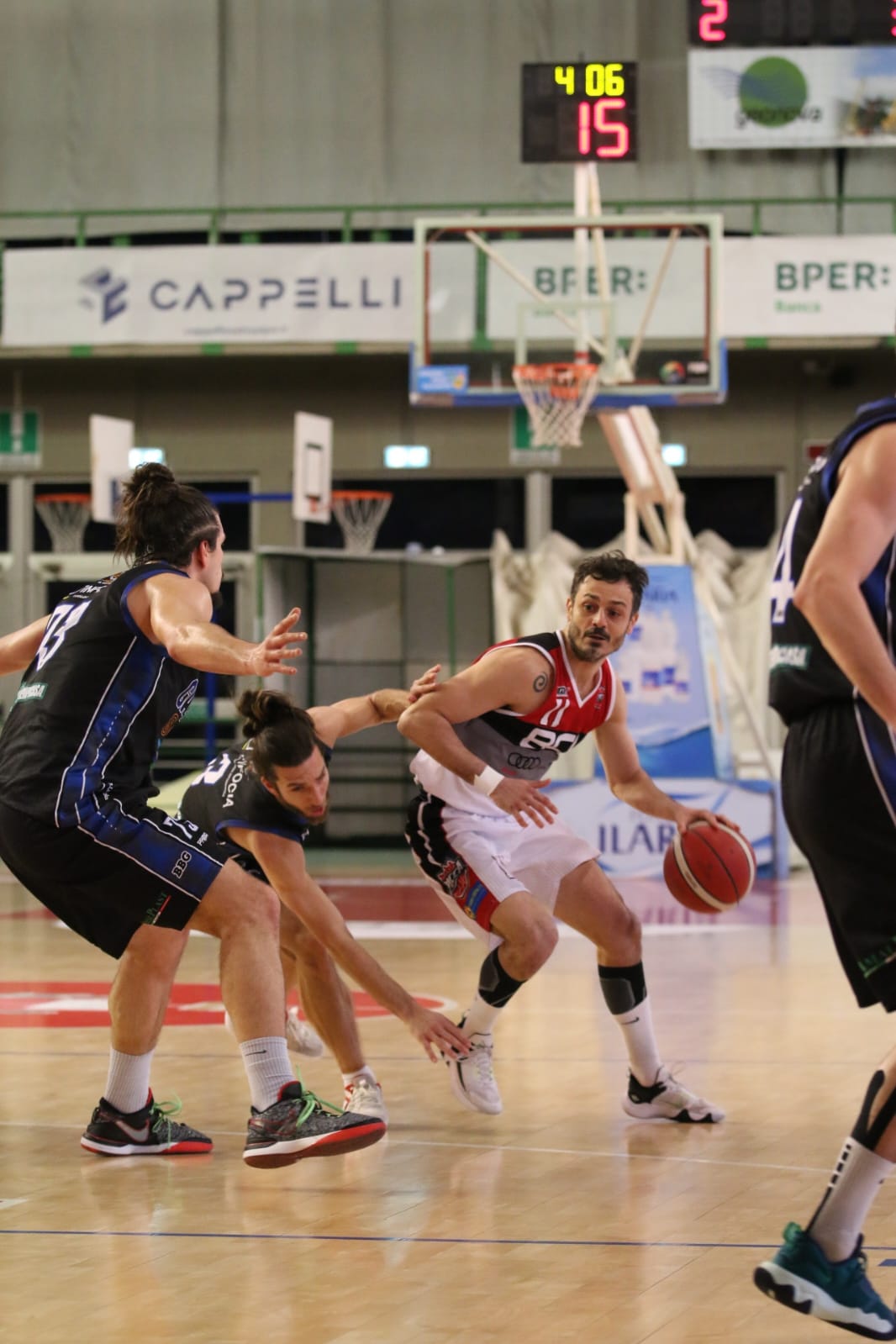 Adesso il Bcl gioca senza due dei sui migliori uomini riuscendo ugualmente a mantenere 5 lunghezze di vantaggio sugli ospiti. E' un finale tesissimo, non adatto a chi ha le coronarie deboli, i punti di vantaggio diventano 7 poi diventano 9, quando mancano 70 indiavolati secondi al termine. Trentin sale in cattedra e spiega al pubblico come si mettono le triple per l'81/72, sono secondi in cui il Bcl sale decisamente sugli scudi, impone agli ospiti il suo gioco, mettendo in campo rabbia e determinazione, chiudendo sulla sirena con una spettacolare schiacciata di Simonetti che firma la prima vittoria del Bcl in questa seconda fase per 86/74.