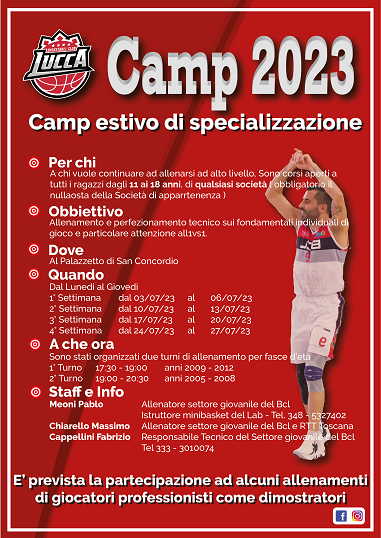 Il Camp 2023 di specializzazione che il Bcl ha approntato, è destinato ovviamente a tutti i suoi tesserati, ma possono partecipare e questa è la vera novità del Camp 2023, che lo rende estremamente interessante, anche atleti appartenenti ad altre società di basket, che vogliono sfruttare il periodo estivo per apprendere cose nuove e migliorarsi, in vista dei campionati che il prossimo anno andranno a giocare
