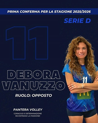 Un'atleta di grande personalità, giocatrice carismatica che ispira e guida da buon capitano le compagne di squadra con i suoi atteggiamenti in campo. Debora Vanuzzo si appresta a disputare la sua terza stagione consecutiva da opposto con la Pantera Lucca, attesa all' esordio stagionale nel girone B di serie D sabato a Vecchiano contro il Migliarino.
