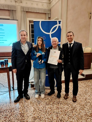 Stella di bronzo al merito sportivo per l'Atletica Pietrasanta Versilia: la Giunta Nazionale del Coni, su proposta della Commissione Benemerenze Sportive, ha assegnato anche all'associazione guidata da Matteo Mattei il prestigioso riconoscimento riservato alle società che sono in attività da almeno vent'anni, in modo continuativo. L'onorificenza è stata consegnata sabato a Lucca, a Palazzo Ducale, alla presenza del delegato provinciale Coni Stefano Pellacani: il team pietrasantino ha ritirato il riconoscimento "schierando", oltre al presidente Mattei, anche il proprio tesserato più longevo, Vinicio Moriconi e la giovane Giulia Remedi, una rappresentanza che ha unito storia, passione e futuro, valori che da sempre guidano il sodalizio sportivo.