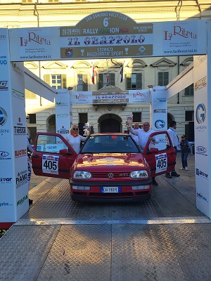 L’equipaggio lucchese di Fabio Vergamini, navigato da Maurizia Bertolucci ha fatto l’annunciato blitz nel mondo dei rally di regolarità a media partecipando il 28 e 29 marzo al Rally del Grappolo a San Damiano d’Asti con una Golf del 1993 categoria “classiche”, ottenendo un lusinghiero quarto posto assoluto con 263 penalità a soli 5 decimi di secondo dal terzo classificato.