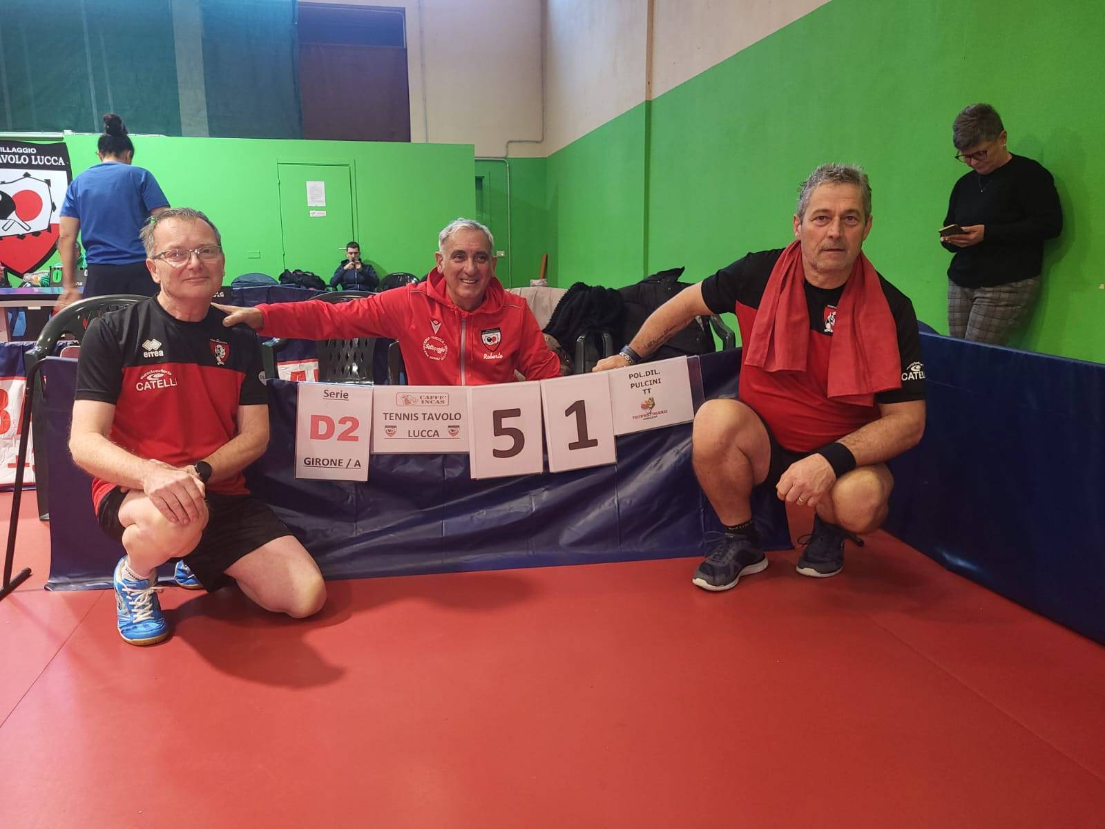 In serie D2, nel girone A, arriva finalmente il primo risultato positivo della stagione, con Giuntini (2), Maccagnano (2) e Dell’Orfanello (1) che superano la Pol. Dil. Pulcini TT A. Sempre in D2, nel girone B, sconfitta casalinga per i lucchesi contro la Pol. Dil. Pulcini TT A (2-5).