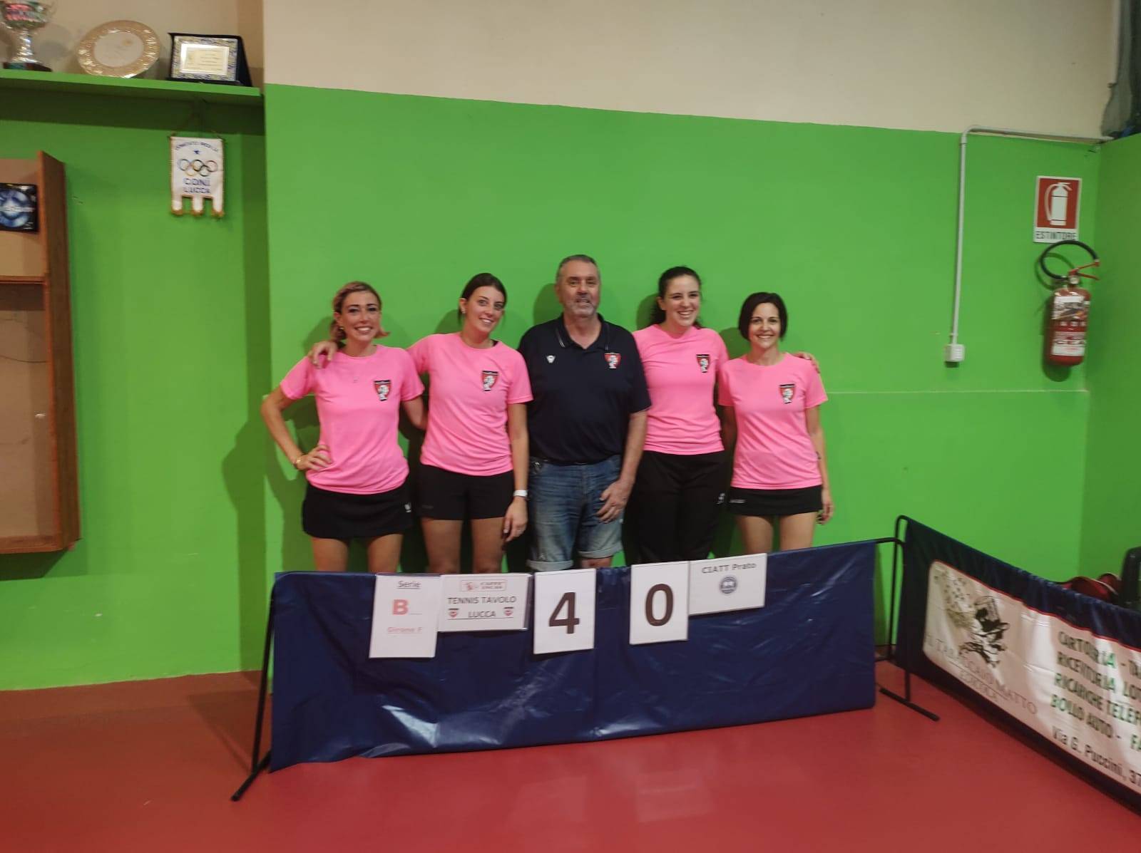 Con una netta vittoria ai danni delle ‘vicine di casa’ del Ciatt Prato e un pareggio (che sta forse un po' stretto) contro la ligure TT Don Bosco Varazze ASD, le ragazze Corini Chiara, Brancaccio Sara, Bortoli Sara e Ferri Giada (guidate da coach Di Fiore Nicola) hanno sancito il loro debutto nel girone F della serie B nazionale femminile, che coincide anche con la prima volta in assoluto di una squadra femminile in una categoria nazionale per la società del tennistavolo lucchese. Grande orgoglio e soddisfazione per l’ottimo esordio in casa rossonera, che ha lavorato bene durante la stagione sportiva precedente per rafforzare il roster femminile: infatti, la coppia ormai assodata Corini-Bortoli ha accolto le esperte Brancaccio Sara e Ferri Giada, proprio per poter competere al meglio in una categoria di rilievo nazionale.