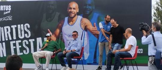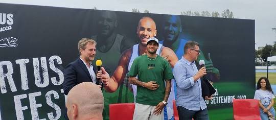 Ha inoltre aggiunto: “Marcell Jacobs rappresenta una leggenda per i nostri colori, un esempio per i giovani atleti ed un orgoglio per la Virtus, dove è cresciuto e dove ha vissuto momenti importanti nella sua crescita da atleta, fino a traguardi leggendari”. Jacobs ha poi risposto ad una serie di domande che hanno spaziato dai suoi trascorsi nelle file della Virtus Lucca, in cui si sono alternati momenti importanti e ricchi di soddisfazioni ma anche momenti difficili da cui è uscito inseguendo il suo sogno. “Dico a tutti questi giovani atleti – ha detto – che non devono mai smettere di cercare di realizzare i propri sogni, nello sport come nella vita; è attraverso le difficoltà che si costruiscono i grandi risultati. Il fallimento è il momento in cui si impara a crescere”. Successivamente tutti i ragazzi presenti in tribuna sono stati invitati davanti al palco dove hanno potuto, a turno, rivolgere le loro domande al campione olimpico. Così facendo Jacobs ha ricordato i bei momenti passati nella nostra città con la Virtus, società che lo ha incoraggiato ad entrare in un gruppo sportivo e diventare così un professionista ed ha aggiunto: “Sarei voluto tornare a Lucca molto tempo prima, per svariati impegni, non è stato possibile; oggi sono riuscito a mantenere quella promessa”.