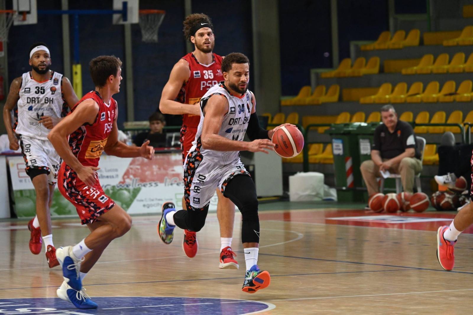 Il Derthona Basket è la prima finalista dell'ottava edizione del Trofeo Lovari. La formazione di coach Ramondino supera Pesaro in una semifinale condotta fin dal primo quarto. A spaccare l'equilibrio è stato Baldasso con un 4/4 dall'arco che ha fatto il break decisivo nella seconda parte della prima frazione. Piemontesi poi sempre avanti grazie alla difesa e a un'altra tripla di Baldasso con un parziale a favore di 19-3 che ha deciso l'incontro. Dopo l'intervallo Pesaro prova ad accorciare con un ottimo contributo di capitan Tambone. Un parziale in avvio di ultima frazione porta le due squadre in scia fino al 54-51. Derthona fatica un po' ma poi rimette a posto le idee per il 68-61 finale.