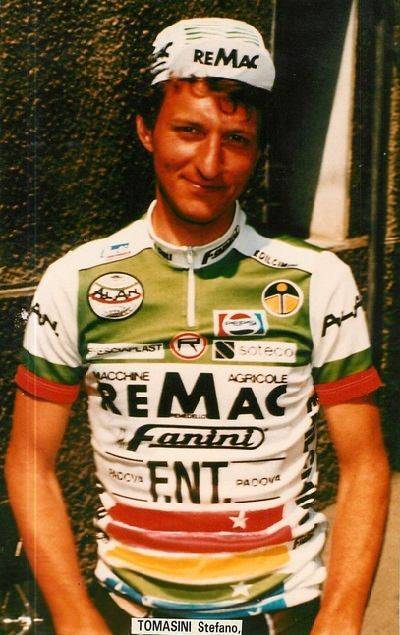 Un corridore di sostanza e qualità che esordì professionista nel 1987 con la Remac-Fanini grazie ad un legame che lo univa ad Ivano Fanini, il patron che ha scoperto, valorizzato e lanciato al successo una miriade di giovani promesse. Il riferimento in questo caso va al bergamasco Stefano Tomasini che, dopo aver vinto nell'81 il titolo italiano juniores e l'anno successivo il Giro della Valle d'Aosta, come tanti suoi coetanei sognava il grande salto. Irriducibile e paziente senza mai mollare rispecchiava un po' il carattere dei bergamaschi. Infatti dovette attendere l'87 per fare il grande salto affidandosi al patron lucchese che investiva sui giovani valorizzandoli in sinergia con la loro crescita. La sua esperienza non è stata trasmessa soltanto ai giovani, ma spesso è stata un ancora di salvezza anche per quei campioni affermati che non trovavano più una sistemazione, consentendo loro di prolungare l'attività per alcuni anni e con questa la serie dei loro successi.