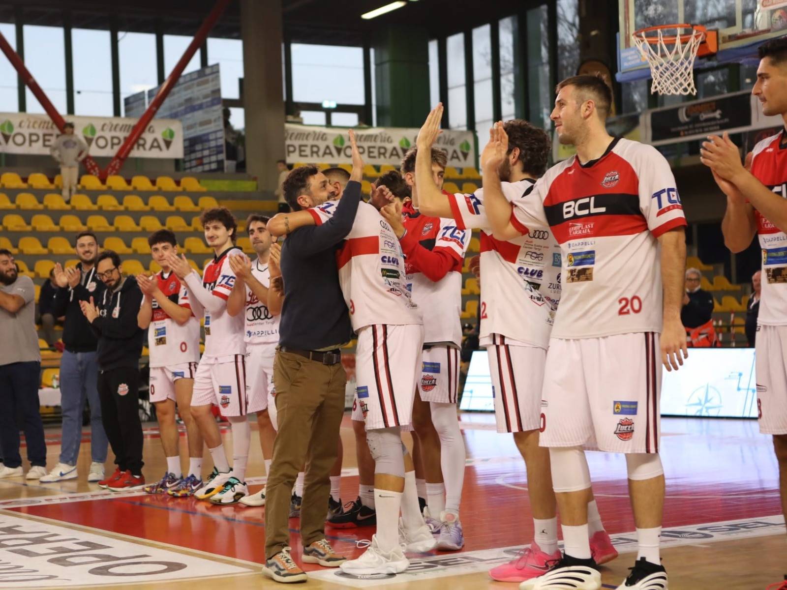 Il 9 novembre non è stato solo il giorno del match tra il Basketball Club Lucca e il Basket Cecina, ma anche quello in cui il BCL ha voluto ringraziare ed omaggiare con una targa ricordo uno dei più bravi giocatori transitati tra le fila del BCL. Giovanissimo ha iniziato la sua carriera da professionista in serie B2, a Palermo, per arrivare a vestire una prima volta la maglia biancorossa nel 2019, per ritornare poi ad indossare la divisa del BCL nelle stagioni 2023, 2024 e 2025, diventando un punto cardine nel roster a disposizioni di coach Olivieri e contribuendo in modo determinante alla conquista delle semifinali di due anni fa e la finale per la conquista della serie B nazionale la scorsa stagione. Il riconoscimento è andato a Tommaso Tempestini, uno dei migliori play che ha calcato molti dei parquet più importanti di tutta Italia e che, al termine della scorsa stagione, ha deciso di appendere le scarpette al chiodo e, stando alle sue parole, non senza un pizzico di rammarico. Non avrebbe potuto essere diverso per uno come Tommaso che ha dedicato una vita intera alla pallacanestro, ma come ci ha fatto capire, oggi per lui ci sono altre priorità, ha due bellissime bimbe, Viola e Teresa ed insieme alla propria compagna Giuditta vogliono stargli vicino il più possibile, seguirle ed accompagnarle nella loro crescita. Sono i primi anni di vita, importantissimi per loro e ancor più per Tommaso e Giuditta, poi più avanti chissà, a casa, una palla a spicchi siamo sicuri che ci sia. La targa che il Presidente Matteo Benigni gli ha consegnato, dopo che Tommaso è stato annunciato dallo speaker ed essere entrato in campo insieme ai suoi ex compagni di squadra, recita in sintesi quanto sia stato apprezzato il suo apporto alla squadra sia come uomo che come giocatore in questi anni. “A Tommaso Tempestini. Per tutto ciò che ha fatto e dato, dentro e fuori dal campo. Per la passione, l’impegno e il cuore con cui ha vissuto ogni partita della sua fantastica carriera. Ha onorato il basket e il BCL fino all’ultimo giorno”. E’ con orgoglio che oggi il Presidente Matteo Benigni consegna a Tommaso questo riconoscimento in segno di gratitudine. Grazie di tutto, Tommi”. Un riconoscimento spontaneo che viene dal cuore, avvalorato anche dal fatto che adesso Tempestini indossa sneakers diverse, ma sul parquet sale ancora, ed a lui è stata affidata la preparazione atletica e fisica della Under 15, che milita nel campionato di Eccellenza, targata BCL. Insomma, come gridavano ieri i Ledwall al palazzetto “TOMMASO UNO DI NOI“!