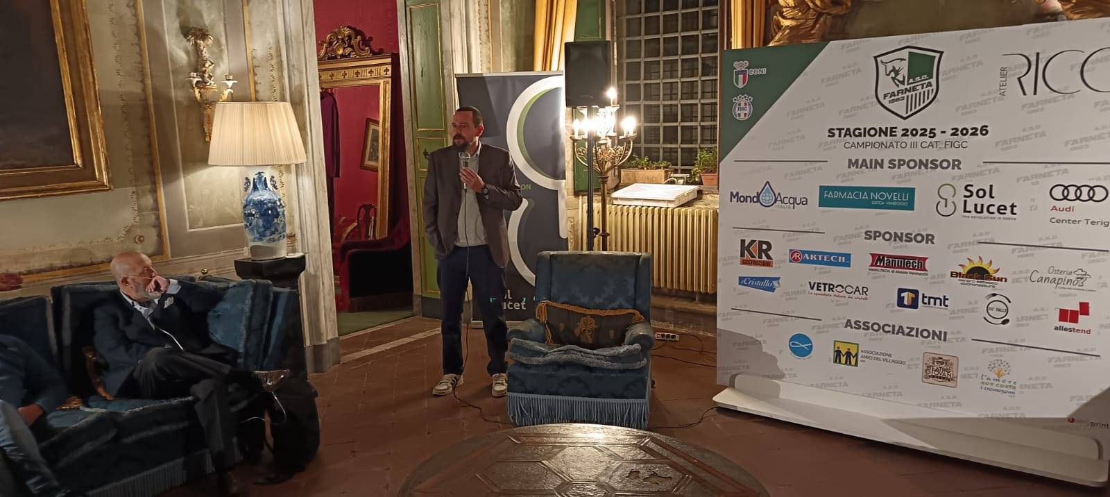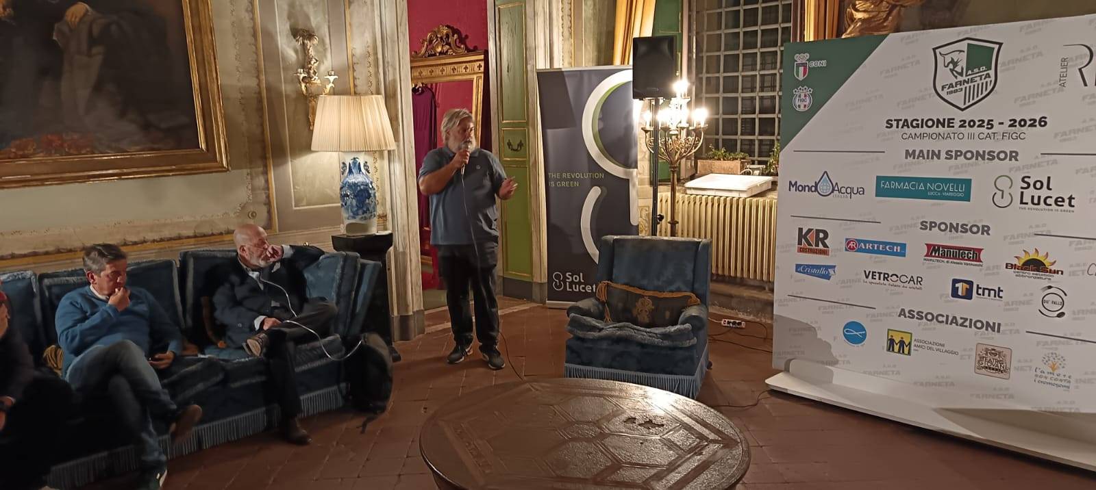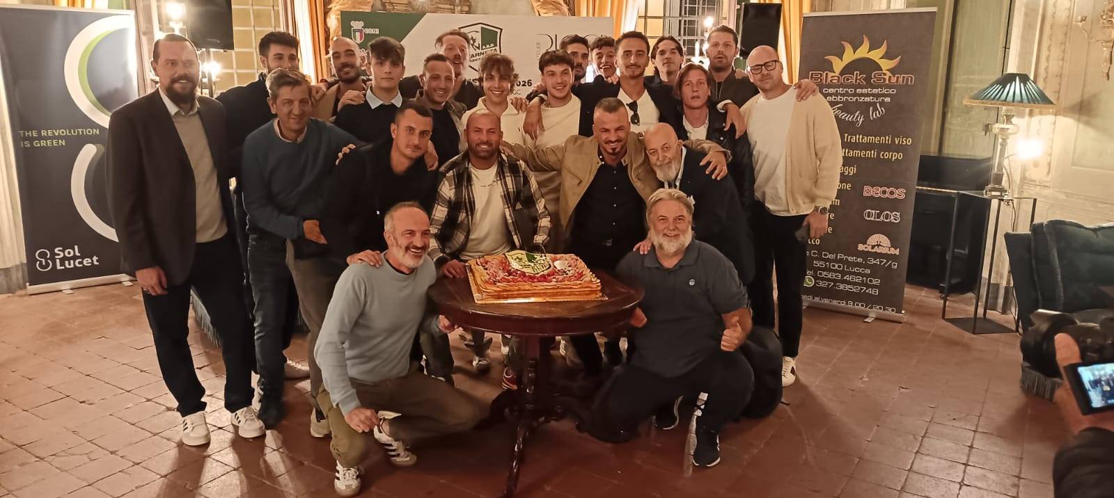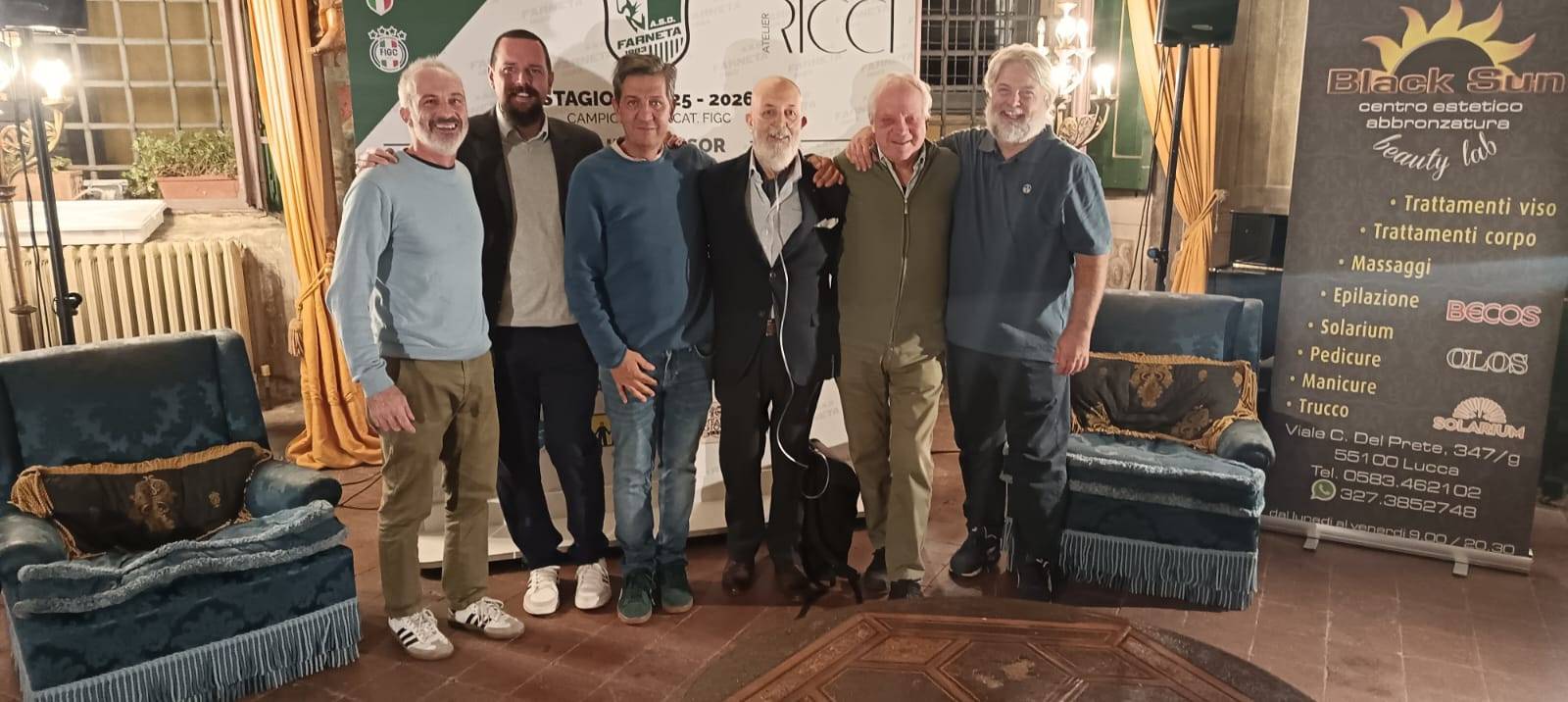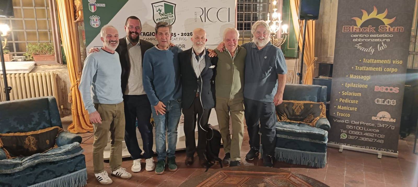 È stata una festa tutta a tinte biancoverdi quella che si tenuta, nella serata di Venerdì 3 ottobre presso l’Atelier Ricci di Lucca, in occasione della presentazione ufficiale dell’A.S.D. Farneta 1983, squadra di calcio dilettantistica che anche quest’anno parteciperà al campionato di III^ Categoria (girone A), che prenderà il via sabato 4 ottobre. A meno di 24 ore dall’inizio del campionato, quindi, è stata presentata ufficialmente la rosa, quasi al completo, del sodalizio del presidente Giovanni Sessa, che quest’anno sarà guidata in panchina dal neo mister Stefano Riccioli che, a sua volta, avrà al suo fianco come vice allenatore Maurizio Banchi. A completare il quadro dirigenziale erano presenti alla serata anche il vice presidente Federico Lovi, il direttore generale Federico Della Bidia ed il dirigente Mario Nucci. Per primo abbiamo incontrato il presidente Giovanni Sessa a cui abbiamo chiesto le proprie impressioni su questa nuova stagione ormai alle porte. “Abbiamo iniziato questa nuova avventura – ci ha detto il presidente – con ragazzi che, ci auguriamo, potranno darci delle soddisfazioni. Soddisfazioni che il Farneta merita! Al di là del fatto che siamo attivi sul piano del “sociale”, e su questo non vi è dubbio, dal punto di vista sportivo abbiamo latitato, nelle ultime stagioni. Quest’anno vorremmo riuscire a trovare la giusta posizione per dire che il Farneta è anche calcio. In tal senso, grazie ai contatti del nostro direttore generale, l’ex presidente Federico Della Bidia, siamo riusciti a portare a buon fine la trattativa che ha portato un gruppo importante nella nostra società”. Il gruppo è quello del S. Alessio che, nella scorsa stagione, ha raggiunto la semifinale dei play off, disputando un campionato di assoluto livello e che ha avuto la guida tecnica di Stefano Riccioli. “Torno a Farneta a tre anni di distanza – ci ha detto il mister. Lo farò con un gruppo di ragazzi che conosco molto bene, vista l’esperienza dello scorso anno. L’idea è di costruire un progetto futuro, dal momento che sono molti i giovani giocatori nella rosa, con la finalità di gettare delle basi importanti anche grazie ad i giocatori di esperienza che sono venuti dal S. Alessio. L’obiettivo che ci siamo posti è quello di fare il meglio possibile, con l’auspicio di arrivare nella griglia dei play off. Il girone che affronteremo quest’anno è molto ostico, come lo è stato la scorsa stagione, ma noi andremo su tutti i campi per giocare le nostre carte, poi vedremo quello che succederà”. Alla luce del progetto che ha intrapreso il sodalizio del presidente Sessa, è innegabile che gli occhi degli appassionati e degli sportivi che seguono le vicende e le sorti del campionato di III^ categoria, saranno puntati sulla compagine bianco verde. Tante aspettative potrebbero creare “pressioni” sul gruppo. “Il nucleo forte del Farneta – ha concluso Sessa – dalla dirigenza a tutto lo staff, è consapevole di questo rischio. È una grande responsabilità che ci accolliamo ma lo faremo in maniera tranquilla, non metteremo ansia ai nostri ragazzi e li sproneremo nel momento in cui ci sarà da dimostrare che il Farneta c’è e che sempre ci sarà”. Per finire abbiamo chiesto a Davide Galli, giocatore di grande esperienza, uno dei leader della squadra, che cosa si aspetta per questa stagione. “Alla viglia della prima di campionato siamo carichi. Barga sarà un campo difficile, tanto quanto il girone che ci accingiamo ad affrontare. Veniamo da un buon pre – campionato, eccezion fatta per una partita di coppa persa malamente. Ma questo ci è sicuramente servito in quello che sarà un percorso di crescita. Non abbiamo ancora mai avuto l’organico al completo e la rosa non è molto ampia. Ma stringeremo i denti e cercheremo di fare il meglio possibile”. Il dolce augurale, le foto di rito con gli sponsor e le associazioni che, da sempre, sono porte integrante delle stagioni e della storia dell’ASD Farneta, sono state la conclusione di una serata che ci auguriamo sia di buon auspicio per una stagione ricca di soddisfazioni.