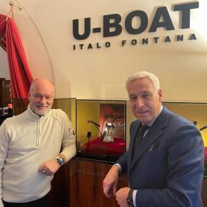 Giorgio Del Ghingaro, sindaco di Viareggio ed ex sindaco di Capannori si è recato a far visita all'azienda di orologi U-Boat di Italo Fontana in quel di Gragnano. Un appuntamento che era in aria da tempo vista la grande passione per gli orologi di King George che proprio per queste feste h ricevuto in regalo una delle creazioni uscite da U-Boat. Come sempre Italo Fontana e il suo staff perfetti padroni di casa. Il sindaco ha visitato il laboratorio e dato una occhiata agli ultimi modelli pronti per essere esposti al salone di Ginevra che si terrà a febbraio e che vede l'eccellenza dell'orologeria mondiale tra cui U-Boat è la sola azienda italiana presente.