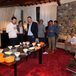 Con alla base il sentiment che ha guidato tutta la serata: la voglia di stare insieme condividendo le cose belle della vita. Dopo l’arrivo e la calorosa accoglienza del “padrone di casa” un aperitivo ha aperto la lunga serata, accompagnato con la visita di alcuni locali della villa e del laboratorio dove le creazioni di Italo Fontana prendono forma e di lì a poco iniziano il loro viaggio in tutto il mondo, garantendo quell’eternità dell’arte italiana nel tempo in ogni luogo. Con un sottofondo musicale gli amici commensali hanno continuato la serata nel loggiato a bordo piscina dove è iniziata una vera e propria “festa del palato e del gusto”.