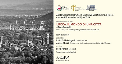 Sarà presentato mercoledì 12 novembre il nuovo libro di Marco Puccinelli «Lucca. Il mondo di una città». L’appuntamento per le ore 17,30 nell’auditorium “Vincenzo Da Massa Carrara” della Fondazione Cassa di Risparmio di Lucca, in via San Micheletto 3.