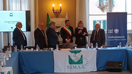 Prestigioso appuntamento per il Mondo di Confcommercio Lucca Massa Carrara, che nella giornata di venerdì ha ospitato a Palazzo Sani i lavori in seduta straordinaria della giunta e del consiglio direttivo nazionale di Fimaa, la Federazione italiana mediatori agenti d'affari che fa parte del Sistema Confcommercio. Giunta e consiglio che di solito si riuniscono a Roma ma che stavolta, in via appunto eccezionale, si sono ritrovati in seduta itinerante a Lucca: una sorta di riconoscimento per il lavoro svolto dalla federazione a livello locale. Quella di Lucca, infatti, è la quarta provincia d'Italia per numero di agenti immobiliari associati a Fimaa. Per l'occasione in città sono giunti oltre 40 fra i massimi esponenti nazionali della federazione, guidati dal presidente Santino Taverna. A fare gli onori di casa anche il presidente di Confcommercio Lucca Massa Carrara Ademaro Cordoni, che ha voluto sottolineare la costante crescita a livello locale di Fimaa sotto la guida da anni del presidente interprovinciale Alessandro Gabriele. Cordoni, assieme alla direttrice Sara Giovannini, ha anche consegnato a Taverna un libro in segno di ricordo di questa giornata. Nel pomeriggio, poi, il gradito saluto istituzionale del vicesindaco di Lucca Fabio Barsanti, presente in rappresentanza dell'amministrazione comunale assieme all'assessore alle attività produttive Paola Granucci, storica associata Fimaa in virtù della sua professione di agente immobiliare. I componenti della giunta e del consiglio direttivo si sono poi concessi un giro per il centro storico, elogiando le bellezze della città.