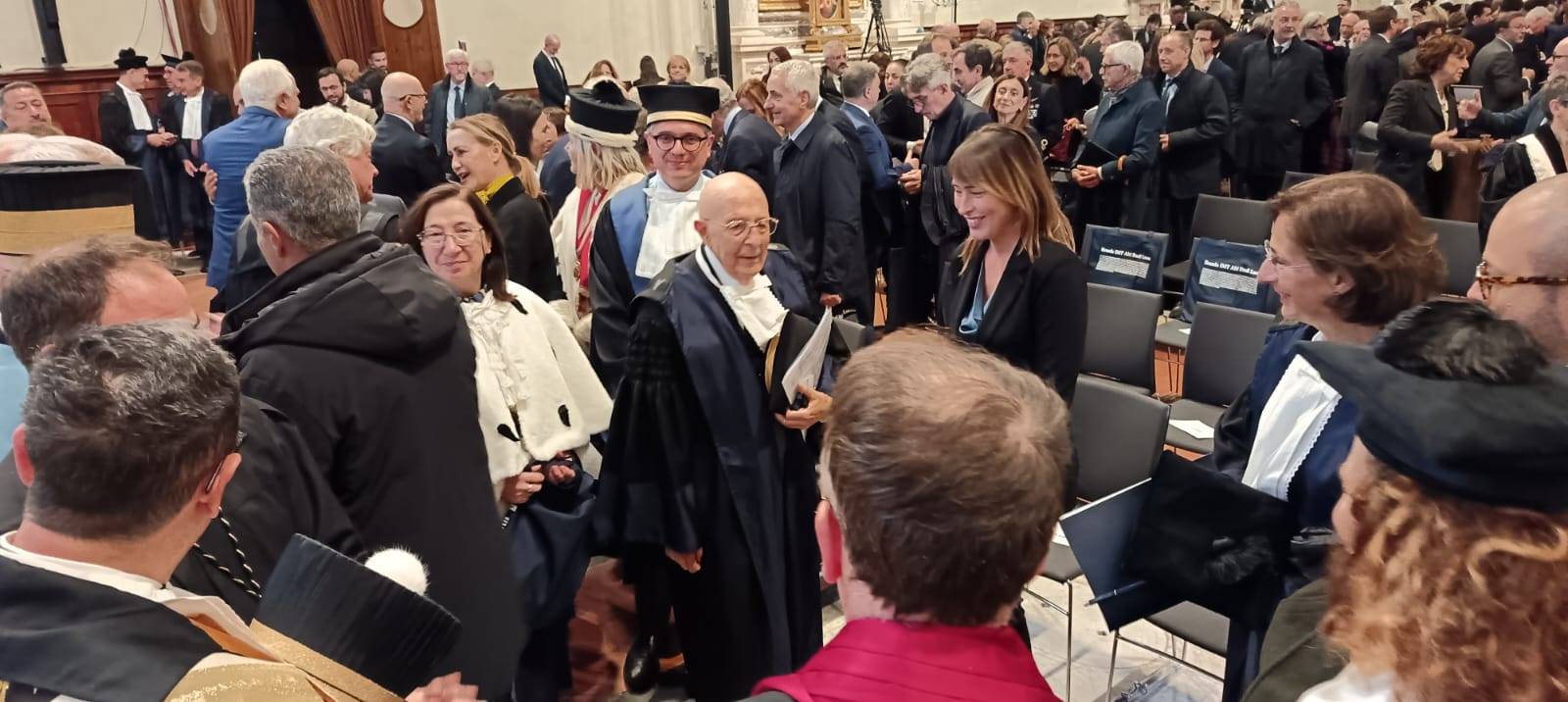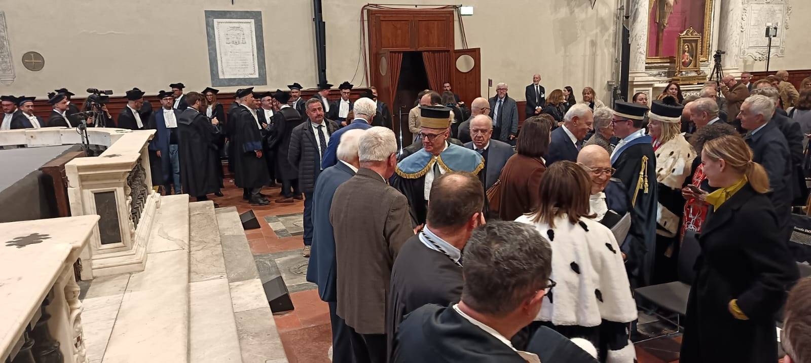 Dopo l’ingresso del corteo accademico, è stata la volta del capo dello Stato che ha preceduto l’esecuzione dell’inno nazionale. È stato poi proiettato il video istituzionale di presentazione della Scuola IMT. Successivamente hanno poi preso la parola Massimo Marsili, presidente della Fondazione Cassa di Risparmio di Lucca, Marcello Pierucci, presidente della Provincia di Lucca, Mario Pardini ed Eugenio Giani, rispettivamente sindaco di Lucca e presidente della Regione Toscana, cui è seguita la prolusione del rettore della Scuola IMT, Lorenzo Casini. Mario Pardini ha voluto sottolineare l’importanza storica di questa cerimonia, non solo per la Scuola IMT ma per tutta la città di Lucca che, per l’occasione, ha ospitato ed accolto, oltre al presidente della Repubblica Sergio Mattarella, moltissime autorità politiche, civili, militari e religiose. Il rettore Lorenzo Casini, dopo aver sottolineato l’importanza e la ricchezza della Scuola di alta formazione IMT che, da oltre vent’anni, grazie alla volontà di Marcello Pera, forma i giovani studenti all’interdisciplinarietà, con un pensiero tanto critico quanto libero. E dopo aver ringraziato tutte le autorità presenti, ha ufficialmente dichiarato aperto l’anno accademico. “Un giurista misurato che ha formato generazioni di giuristi e di studiosi – ha sottolineato Marta Cartabia nella sua approfondita laudatio - e che, con grande merito, si appresta a ricevere questo prestigioso riconoscimento. “Sono onorato di ricevere questo dottorato di ricerca – ha detto nel preludio alla sua lectio magistralis Cassese – titolo accademico onorifico le cui origini risalgono addirittura al XV secolo. Le lodi vanno spartite nel tempo in cui si vive con le sue felicità ed i suoi turbamenti. La storia è studiata nel suo svolgimento mentre io voglio rappresentarla nel suo risultato, nel lascito del passato al presente”. Un excursus di ottant’anni di Repubblica Italiana, dalla sua nascita ad oggi, che ha enumerato i cambiamenti e l’evoluzione di un intero popolo, facendo riferimenti statistici e analizzando numeri che dimostrano quanti risultati sono stati ottenuti con l’attuazione della Costituzione Italiana fin dalla nascita della Repubblica Democratica e durante tutto il corso della sua storia. Un come eravamo e come siamo, attraverso il progresso e le sue direttrici, attraverso le vie della storia, con i tornanti e l’inquietudine di un intero paese. L’intervento del professor Cassese si è chiuso con l’immancabile augurio, rivolto a tutti i docenti ed a tutti gli studenti e le studentesse presenti, per l’anno accademico che verrà ed è stato seguito da un lungo, lunghissimo applauso da parte di tutti i tantissimi presenti. È stato poi il momento della consegna della pergamena da parte del rettore, con cui è stato conferito a Cassese il sopra citato Dottorato di ricerca honoris causa in “Cultural Systems”. Il tanto atteso intervento del presidente Mattarella però, alla fine, non c’è stato ma è altrettanto vero che già questa mattina non era stato confermato e così questa importante cerimonia si è conclusa con un toccante e suggestivo momento musicale a cura di un quartetto d’archi del Conservatorio di Musica “Luigi Boccherini” che ha fatto risuonare nella splendida cornice della chiesa di San Francesco le note della famosa aria pucciniana “Nessun dorma”. E cosi, dopo i saluti alle istituzioni, il presidente si è congedato, salutato da tutti i presenti sia all’interno che fuori la chiesa. Il Capo dello Stato, con la sua sola presenza ha comunque reso omaggio a Lucca, città dove ricerca e cultura si intrecciano con la formazione, dove il passato ed il futuro dialogano tra di loro ed è proprio per questo che è stata scelta, per rappresentare la formazione universitaria a livello internazionale, in quello che è stato non solo un appuntamento istituzionale ma un vero e proprio riconoscimento.