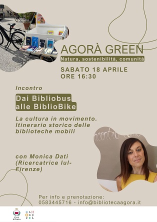 Il mese di aprile alla Biblioteca Agorà si muove tra sostenibilità, comunità e nuove forme di racconto, intrecciando incontri, laboratori e iniziative diffuse sul territorio. Per il ciclo Agorà Green, si segnala l'incontro "Dai Bibliobus alle BiblioBike: la cultura in movimento" con Monica Dati (18 aprile), un viaggio nella storia delle biblioteche mobili che si si ccollega idealmente alla ripartenza della Bibliobike: da marzo è tornata infatti un mercoledì al mese al parco giochi di Porta San Donato, portando libri, prestiti e letture di Nati per Leggere all'aperto per i più piccoli. Grande spazio anche alla Paper Week, con due laboratori creativi a cura di Artebambini–uno in biblioteca e uno ad Agorà Fuori le Mura – e la presentazione del progetto artistico "Almeno te sei sorella di Paolo – emozioni fermate" di Paola Pasquinelli (15 aprile), un libro manoscritto in carta riciclata e rilegato a mano. Per la rassegna Voci di biblioteca, si terrà la presentazione del libro Il senso della realtà di