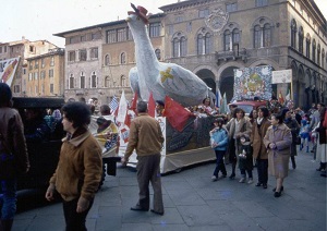 La storia del Carnevalfratta. Sono passati quasi cinquant'anni dal 25 febbraio 1979, prima edizione del Carnevalfratta. La festa nacque come una vera e propria iniziativa di quartiere durante la quale tutti davano il proprio contributo: tra cibo, maschere improvvisate e pensate, spettacoli teatrali e carri rionali di cartapesta, il Carnevalfratta invadeva - e invade - con le sue onde colorate e goliardiche tutto il quartiere della Fratta, del Bastardo e, ovviamente, piazza San Francesco. Tante persone hanno animato questa festa 'corale': negli anni, nei locali dell'ex cinema Eden (oggi ingresso IMT), hanno preso vita il laboratorio delle maschere, quello delle installazioni di cartapesta e l'angolo dei vestiti. E poi gli spettacoli, le installazioni, la comunità che si ritrova e partecipa. Memorabile fu, un anno, l'arrivo di sessanta maschere di Pulcinella direttamente da Avellino a testimonianza del fatto che il CarnevalFratta ha da sempre avuto una connotazione capace di superare i confini della città.