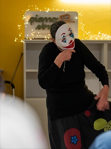 Maria Teresa Elena offre la sua arte anche per occasioni dal grande valore sociale. Come ha fatto il 23 ottobre a Mandorla, la comunità alloggio protetta che ospita eventi aperti al pubblico ogni due giovedì: il suo laboratorio di maschere è stato un viaggio coinvolgente tra maschera, personaggio, corpo, gesto, espressione. "Con Astolfo sulla Luna" è fruibile il 3 dicembre anche da persone normovedenti,alle quali verrà fornita una mascherina per gli occhi.