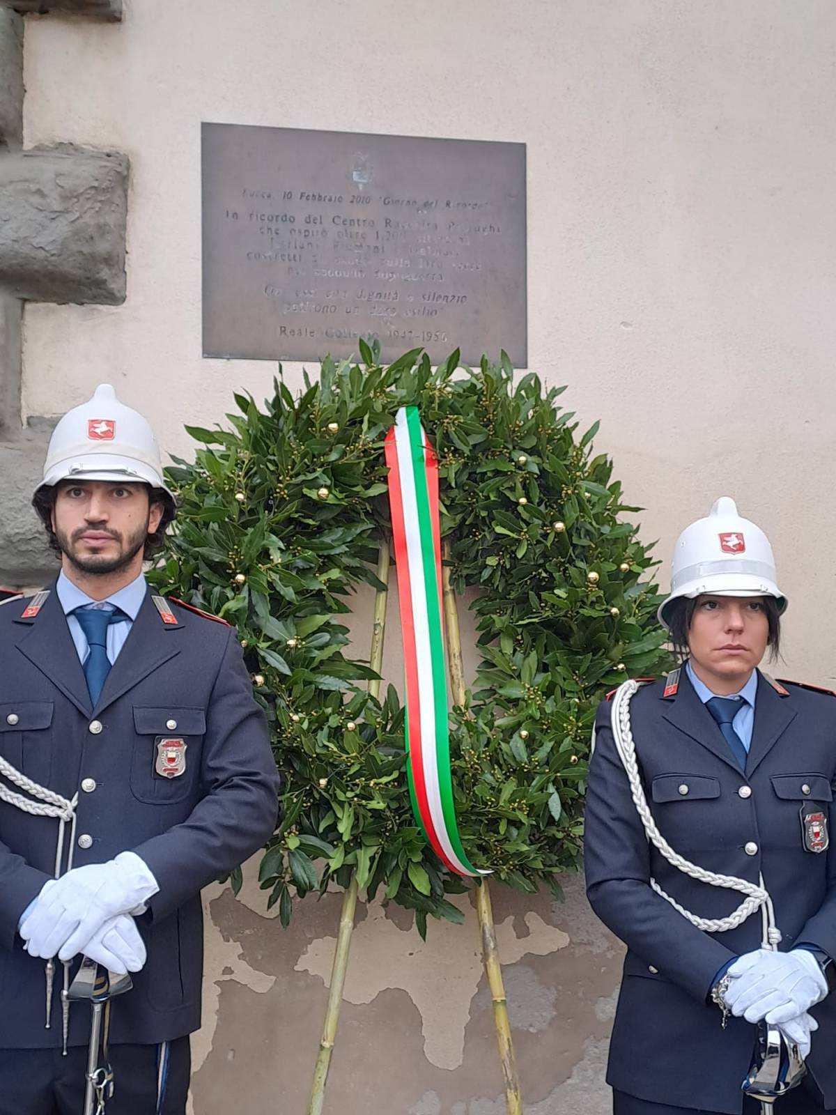 All'apposizione di una corona d'alloro alla targa che ricorda quello che fu un Centro di Raccolta degli esuli giuliano-dalmati dal 1947 al 1956, il Real Collegio appunto, erano presenti il sindaco Mario Pardini, il prefetto Cristina Favilli e il presidente della provincia Marcello Pierucci, oltre a una folta rappresentanza di autorità civili e militari, assessori, consiglieri comunali e cittadini. Fra loro hanno preso la parola, oltre ai rappresentanti istituzionali, anche Simonetta Simonetti di ATVL-Associazione Toscana Volontari della Libertà e Sandro Righini, commissario provinciale comitato 10 febbraio.