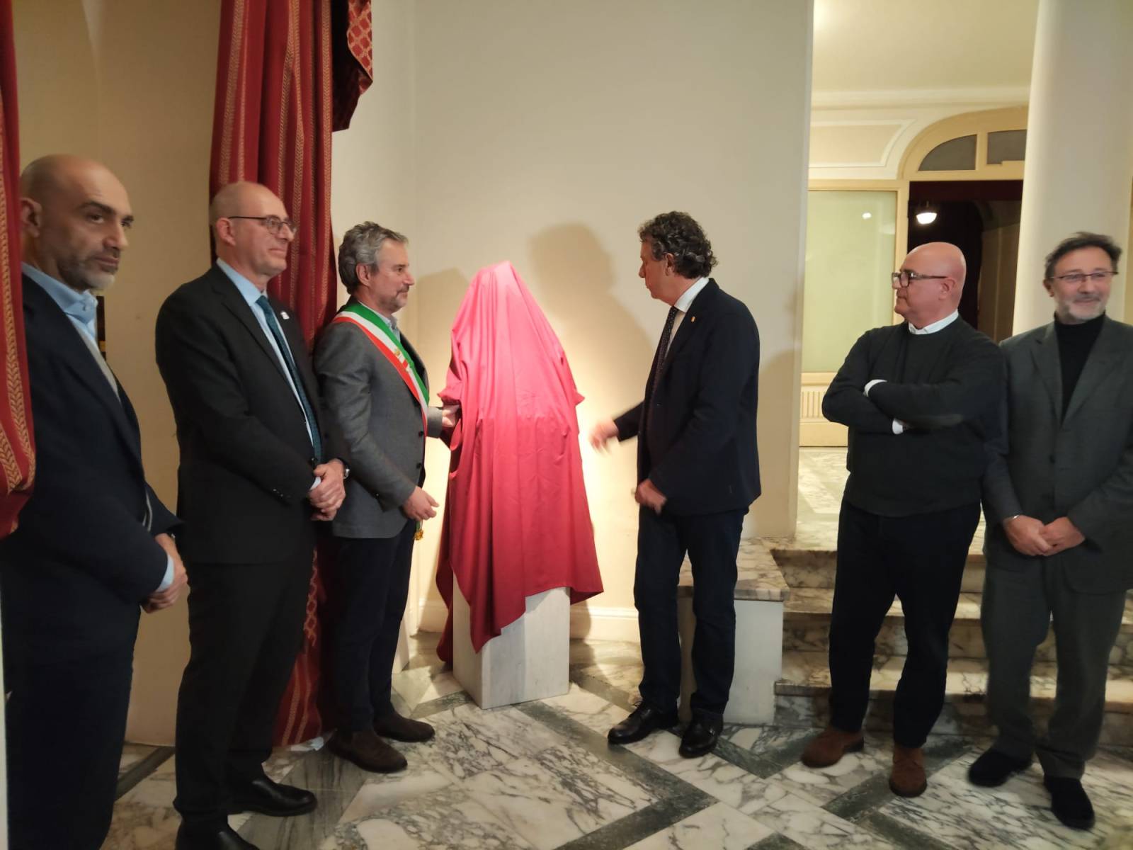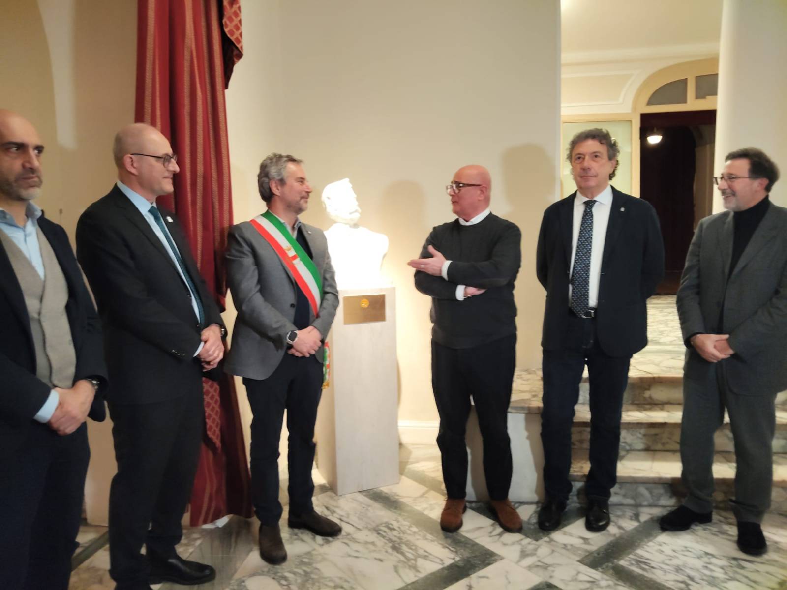Il busto raffigurante Giacomo Puccini, donato dal “Rotary Club Lucca Giacomo Puccini”, si trova, a partire dal pomeriggio di mercoledì 11 febbraio, nel foyer del Teatro del Giglio Giacomo Puccini. La statua, realizzata in marmo e firmata dall’artista Nicola Domenici, è stata svelata alla cerimonia di inaugurazione delle ore 18.00. A sollevare il velo sono stati il sindaco di Lucca Mario Pardini e l’ex presidente della fondazione Rotary Club Lucca Andrea Boni. “Quando, poco più di un anno fa – ha dichiarato quest’ultimo - il nostro socio Giuseppe Altomare, artista nazionale ed internazionale, venne a proporci l’iniziativa di poter fare un concerto all’interno del Teatro del Giglio Giacomo Puccini, ci siamo subito innamorati di questa proposta. Abbiamo poi deciso di collaborare anche a questo progetto, nel quale hanno preso parte attiva tanti nostri soci, dall’artista Domenici a chi si è procurato il marmo. Una quota discreta del ricavato della donazione è stata destinata ad un service importante per un’associazione lucchese che si occupa dell’attività fisica degli anziani, le Chiavi d’Oro”. Alla cerimonia erano presenti anche Fulvio Spatarella, direttore generale del Teatro del Giglio, l’attuale presidente del Rotary Club Lucca Alessandro Pachetti ed i membri Paolo Ippolito, Marco Mei ed Emanuele Ninci. L’omaggio al maestro lucchese, in occasione del Centenario della “Turandot” che andò in scena per la prima volta il 25 aprile del 1926 al Teatro della Scala, è stato commentato anche dall’amministratore unico del Teatro del Giglio Giacomo Puccini, Giorgio Angelo Lazzarini: “Bene o male noi siamo un tempio, e nei templi bisogna anche ricordare le grandi figure. Chi entra qui dentro, oltre ad ascoltare la musica, può avere questo tipo di suggestioni anche a livello iconografico, di cui noi andiamo molto fieri”. Infine, ha voluto esprimere la propria soddisfazione l’artista a cui è dovuta la creazione dell’opera marmorea. “È stata una committenza eccezionale – ha quindi concluso la cerimonia Nicola Domenici - perché mi hanno dato carta bianca. E per un artista, avere l’opportunità di esprimersi come vuole, è il massimo. Una volta che ho completato il bozzetto, mi hanno detto subito “Perfetto, puoi andare avanti”. Il marmo è il migliore che si possa trovare alla cave di Pietrasanta e nella zona delle Apuane. Si tratta di un marmo statuario pregiatissimo, e poterlo maneggiare è stato per me un onore, come poter vedere la mia opera esposta qui al Teatro del Giglio Giacomo Puccini”.