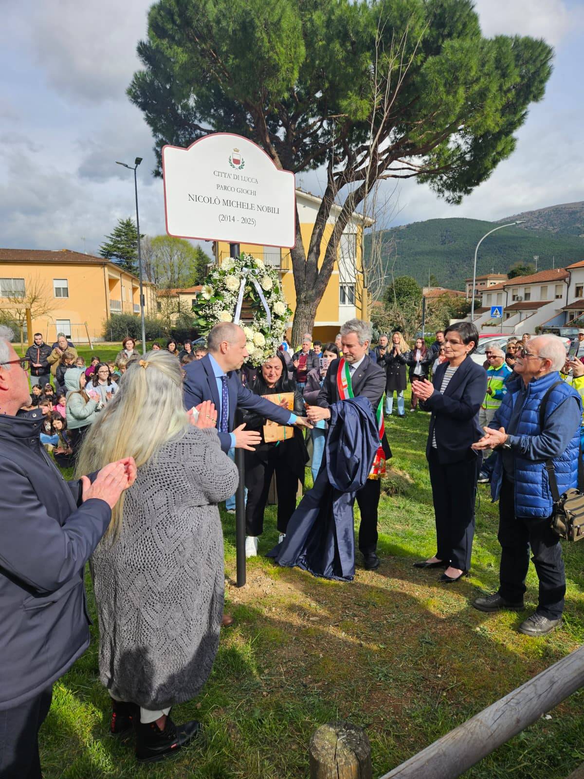 Questo pomeriggio (18 marzo), a Santa Maria del Giudice, è stato intitolato il parco giochi di via Ventiquattro maggio al piccolo Nicolò Michele Nobili (Lucca, 27 ottobre 2014 – Pisa, 6 giugno 2025), che si è spento all'età di soli 10 anni per una malattia che gli era stata diagnosticata all'età di 3 anni.