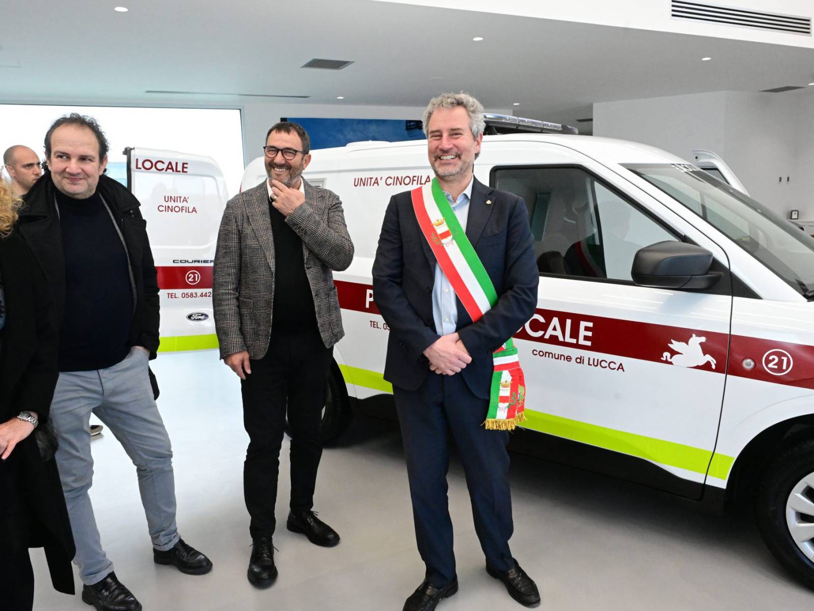 Alla presenza del sindaco Mario Pardini, dell'assessore alla sicurezza Salvadore Bartolomei, del Comandante della Polizia Locale di Lucca Bruno Bertilacchi e del capo di gabinetto Beniamino Placido sono stati presi in consegna oggi due nuovi furgoni Ford Transit acquistati dall'amministrazione comunale da Ford Blubay Lucca per il Nucleo cinofilo della Polizia Locale.