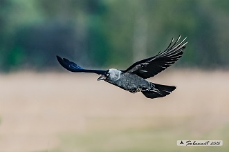 La taccola - come è noto - è una sorta di corvo non troppo diversa per aspetto dagli altri suoi simili: più piccola ed elegante arriva a misurare intorno ai 30 centimetri o poco più. Tutta nera, dal becco piuttosto corto alle zampe, volge al grigio ardesia sul ventre e sulla nuca di solito evidenzia una caratteristica macchia arrotondata color grigio-cenere. Presente in tutta Europa e in buona parte dell'Asia e dell'Africa settentrionale, vive un po' dappertutto preferendo scenari rupestri e le sponde alte dei fiumi. La sua passione, però, sono i luoghi diruti: case abbandonate, chiese senza più fedeli, ruderi di antichi castelli, campanili nelle cui fenditure sistema il nido, deponendo uova verdognole macchiate di scuro. Onnivora, si nutre di insetti, molluschi e semi, e - badate bene - non disdegna le uova delle altre specie volatili. Migratore parziale, si differenzia dai corvi e dalle cornacchie per il caratteristico e inconfondibile "chiò", per la rapidità del volo, per la vivacità del comportamento: infatti, il termine taccola è probabilmente derivato dal longobardo tahala e indica una caratteristica attribuita a questo uccello, ossia il gioco, la burla, la chiacchiera... Presenza ricorrente del paesaggio toscano, il Coloeus monedula, questo il suo nome scientifico, animale sociale, forma stormi anche consistenti che a sera si riuniscono su posatoi comuni. È un "ilare uccelletto", festoso, un po' petulante ma simpatico e soprattutto utile. Infatti, la taccola compete con i piccioni domestici nell'uso dei nidi, ma è più forte e quindi viene utilizzata in alcune città nella lotta biologica alla invasione di questi ultimi.