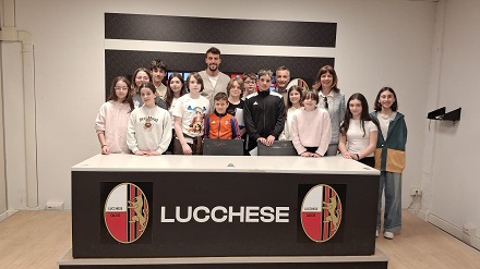 Continuano a fare esperienze importanti i giovani redattori del giornalino della Scuola Media Chelini di S.Vito. Dopo aver intervistato il sindaco di Lucca, stavolta si sono trasformati in giornalisti sportivi ed hanno voluto conoscere l’ambiente della Lucchese che per un giorno li ha resi protagonisti di una giornata speciale. Accompagnati dalla prof.sa Paola Berchielli e dal giornalista Paolo Bottari, responsabili del progetto, i quindici componenti della redazione hanno potuto intervistare in sala stampa il capitano della Lucchese, Salvatore Santeramo che ha risposto con grande simpatia e disponibilità alle molteplici domande dei ragazzi, parlando dei suoi esordi giovanili, della sua carriera e del campionato trionfale che con i suoi compagni sta portando in fondo e finendo per firmare autografi e foto a tutti. Poi la visita nella pancia dello stadio, dagli spogliatoi al campo e alle tribune e l’incontro con mister Pirozzi, che ha dato ai ragazzi consigli e aneddoti della sua vita da allenatore. Ma la giornata dei giovani reporter è proseguita nel pomeriggio con l’incontro con tutta la squadra a Saltocchio, durante l’allenamento, con un divertente siparietto orchestrato da mister Pirozzi che, prima di fare una foto di gruppo, ha fatto presentare i suoi giocatori ai ragazzi. Davvero una giornata speciale che i ragazzi ricorderanno, che sarà l’oggetto del prossimo giornalino della scuola e che li ha fatti sentire dei veri tifosi rossoneri.