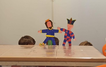 Nel laboratorio "Le vie del pellegrinaggio: fabula peregrinationis", le bambine e i bambini divisi in gruppi sono partiti dal racconto di alcuni fatti storici emblematici o leggendari che caratterizzano il luogo di pellegrinaggio per realizzare le marionette che rappresentavano i vari personaggi delle storie raccontate e poi inscenare per i compagni un piccolo spettacolo che raccontava la leggenda da loro scelta. Così, nascosti dietro il tavolo, mentre un narratore leggeva la storia e loro la mettevano in scena con le marionette, per i compagni seduti davanti, tutti si sono divertiti moltissimo.