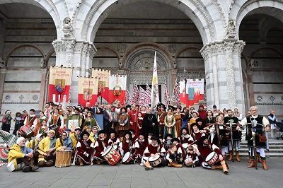 Grande festa in Piazza Napoleone per la parata degli Sbandieratori e Musici Città di Lucca che come ogni anno ha attirato centinaia di spettatori. A concludere la giornata l'iniziativa promossa da Lo Studiorum che nell'auditorium del Cred ha messo in scena un'originale evento tra scherma storica e danze rinascimentali.