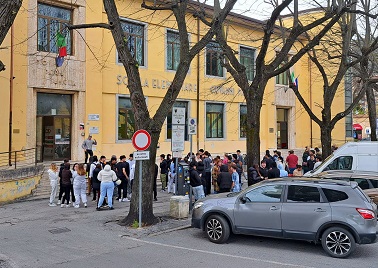 In piazza Matteotti, come accaduto mercoledì, si sono raccolti gli studenti delle Barsanti e dell'agrario "Don Lazzeri", insieme al personale scolastico e agli agenti della Polizia Locale che hanno "protetto" la piccola folla fino a ricognizioni avvenute.