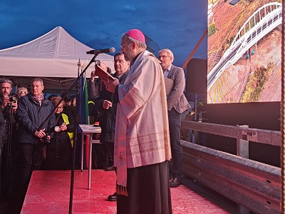“Questo ponte non sia solo un’infrastruttura utile, ma anche simbolo di unione, incontro e pace: in questi giorni di Natale, in questi tempi difficili, evochi la necessità di incontrarci e ci esorti a recuperare la vocazione umana alla mediazione, senza muri, divisioni e barriere”: con queste parole monsignor Paolo Giulietti, vescovo di Lucca, ha dato la sua benedizione al nuovo ponte sul Serchio, monumentale opera da decenni attesa dagli abitanti di Lucca e non solo e oggi finalmente inaugurata, come un regalo di Natale alla cittadinanza tutta. In attesa dell’effettiva apertura della strada al transito, che avverrà nella mattina della vigilia di Natale, quello di oggi è stato un pomeriggio di festa, accompagnato dalla musica degli studenti del conservatorio Boccherini che hanno intonato “Nessun Dorma” dalla Turandot di Giacomo Puccini e dall’accensione delle luci a led del ponte, illuminate con i colori della bandiera italiana.