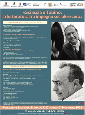 Ed è proprio al rapporto tra uno di questi due autori – Mario Tobino – e la grande letteratura nazionale, si ispira il convegno: "Sciascia e Tobino: la letteratura tra impegno sociale e cura", promosso dall'Associazione Medici Scrittori Italiani, che avrà luogo nella sede della Fondazione Sciascia, a Racalmuto, il 31 ottobre e l'1 novembre 2025.