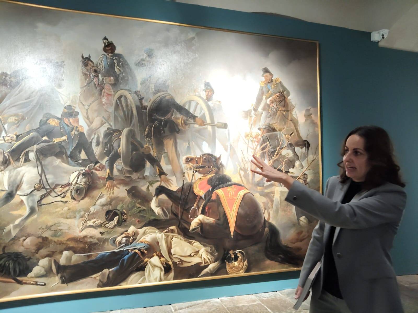 Alla conferenza stampa, tenutasi alle ore 11 di questa mattina, Luisa Berretti, direttrice e curatrice della mostra dal titolo “Il pittore del Re. Luigi Norfini nell’Italia del Risorgimento”, assieme ad Emanuele Pellegrini ed Ettore Spalletti, ha fatto una presentazione ‘a tutto tondo’ del perché di questa interessante esposizione. “Quest’anno si celebra il bicentenario del pittore Luigi Norfini – ha affermato la direttrice - che nacque il 1^ giugno del 1825 a Pescia e morì a Lucca nel 1909. È una mostra ambiziosa perché abbiamo ricevuto dei prestiti molto importanti, due battaglie, tra le più imponenti, della prima e della seconda Guerra d’Indipendenza Italiana, una dal Museo Nazionale del Risorgimento di Torino e l’altra dal Museo Nazionale del Risorgimento di Milano. In questa mostra viene fuori, in gran parte inedita, una produzione sostanziale dell’artista, assieme a ritratti e vari quadri di genere”. Questa mostra è il primo di una serie di importanti soggetti del nuovo Istituto dei Musei Nazionali di Lucca, nato ormai da un anno. Ancora nel pieno di un’attuazione della riforma del Ministero della Cultura, questo ha comportato un elemento di complicazione per il raggiungimento dell’obiettivo, ma nonostante ciò l’apertura avverrà proprio questo pomeriggio. Dislocata in più sedi, la mostra si terrà principalmente nella Casermetta del Museo Nazionale di Villa Guinigi, con l’esposizione di trenta opere dell’artista. Inoltre, al secondo piano di Palazzo Mansi, il percorso presenta un’esposizione temporanea per i dipinti di Norfini e degli allievi, ed è presente, anche al Museo Civico di Palazzo Galeotti a Pescia, una terza serie di opere restaurate ed emerse dai depositi per l’occasione. “Quest’oggi abbiamo un grande esempio - ha poi preso la parola il sindaco Mario Pardini - di come la relazione e la sinergia ci permettano, effettivamente, di realizzare cose importanti per il territorio. Per questo ci tenevo ad essere qui, in presenza, per ringraziare i collaboratori e tutti quelli che hanno lavorato a questo meraviglioso progetto”. Organizzata in sezioni tematiche, l’esposizione, oltre a mettere in luce la storia e la carriera del pittore, a partire dagli esordi, attraversa la storia italiana dall’Unità ai primi anni del Novecento, evocando i protagonisti e gli episodi che ne segnarono il cammino. La mostra si chiuderà il 26 aprile 2026. Per chiunque fosse interessato a conoscere le opere risorgimentali del pittore, sarà libero di farlo dal martedì al sabato, dalle ore 12.00 all’ultimo ingresso delle ore 18.00.