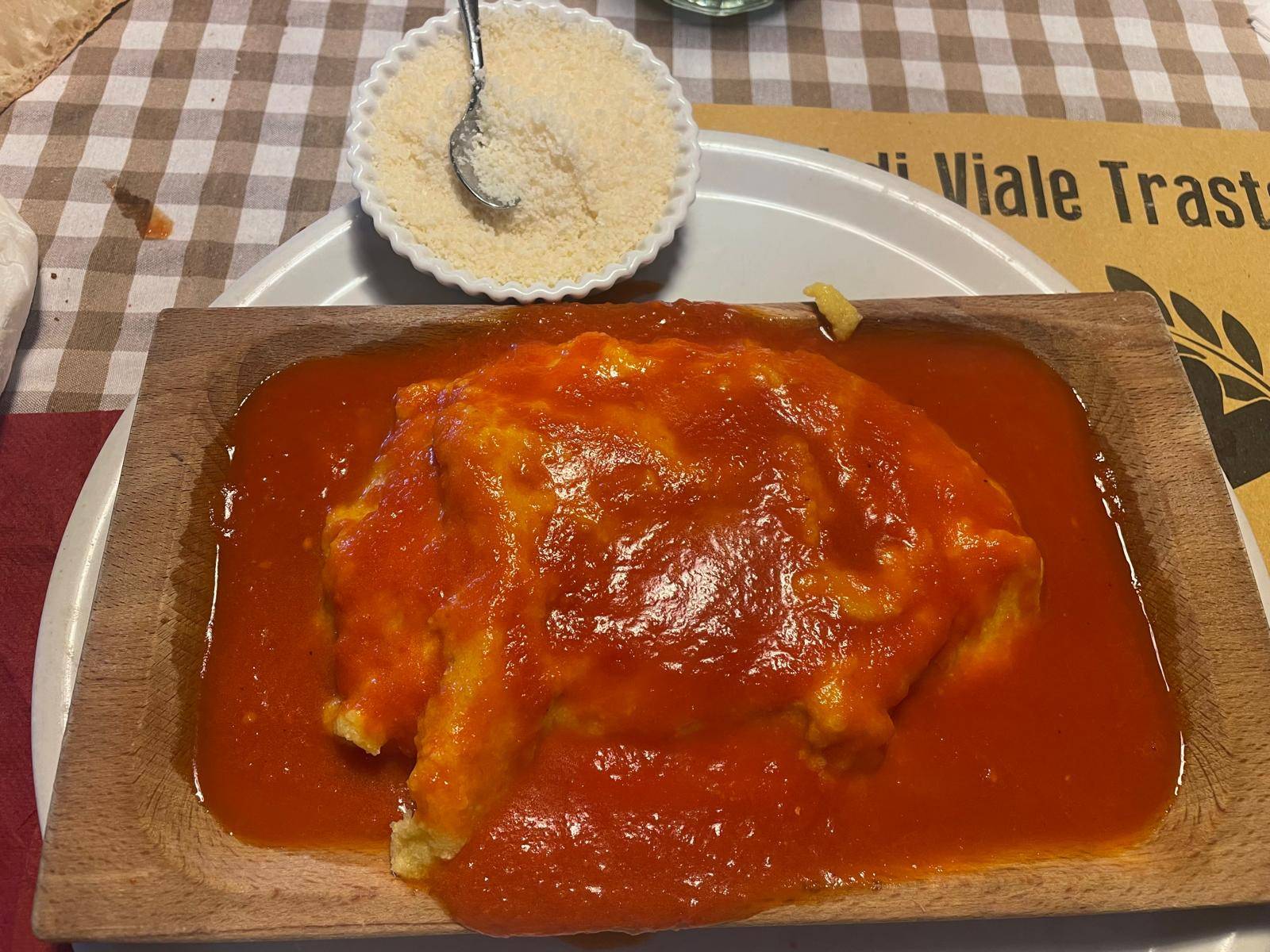 Frontoni dal 1921 è un pezzo di storia gastronomica di una città che, di storia, a parte i monumenti millenari, non conserva granché. Il sottotitolo che accompagna il biglietto da visita è un richiamo al passato: quelli di Viale Trastevere. Ci torneremo senza ombra di dubbio ogniqualvolta capiteremo nella capitale. Anche per sentire quell'accento romano per niente sguaiato, ma tanto gradevole che ci illude che questa città sia ancora, in parte, quella che ricordavamo. E invece, purtroppo, non è vero.
