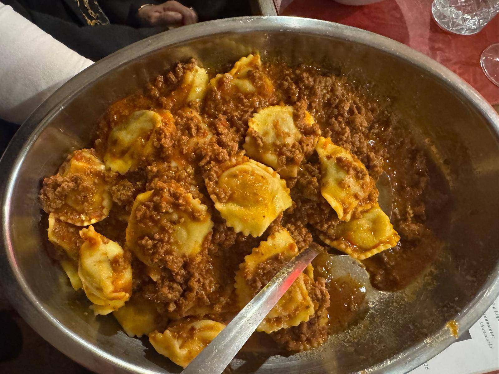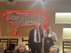 La conviviale dell’Accademia si è trasformata quindi in un vero e proprio viaggio sensoriale. I partecipanti hanno potuto degustare tagli pregiati preparati secondo metodi tradizionali, esaltati da cotture semplici ma rigorose, capaci di valorizzare ogni sfumatura di gusto. Non sono mancati i grandi classici della macelleria toscana, accompagnati da vini del territorio lucchese, un bianco e un nero di Montecarlo, che ne hanno esaltato ulteriormente il carattere. Gli antipasti selezionati con altrettanti affettati di produzione propria con il classico prosciutto bazzone accompagnanti da formaggi, crostini e polenta fritta con ragù immancabilmente di carne proveniente dalla macelleria. A seguire il primo piatto di tortelli sempre e naturalmente al ragù di carne con ripieno anche questa volta di carne. Una grigliata mista ha stimolato, qualora ve ne fosse ancora bisogno, le papille gustative degli esperti commensali. Hanno fatto da padrone, anche se non prodotte in macelleria, le portate che hanno accompagnato le carni, ovvero le ottime patate arrosto e la favolosa grigliata di verdure, sapientemente scelte dallo chef.