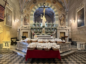 Come ogni anno in occasione del Giovedì Santo, la Misericordia di Borgo a Mozzano ha rinnovato la tradizionale benedizione della Pasimata presso la chiesa del Convento di San Francesco. Un appuntamento a cui i tanti soci e volontari della Confraternita sono molto legati e, anche in questa occasione, le pasimate, una pagnotta di pane dolce, sono andate esaurite.