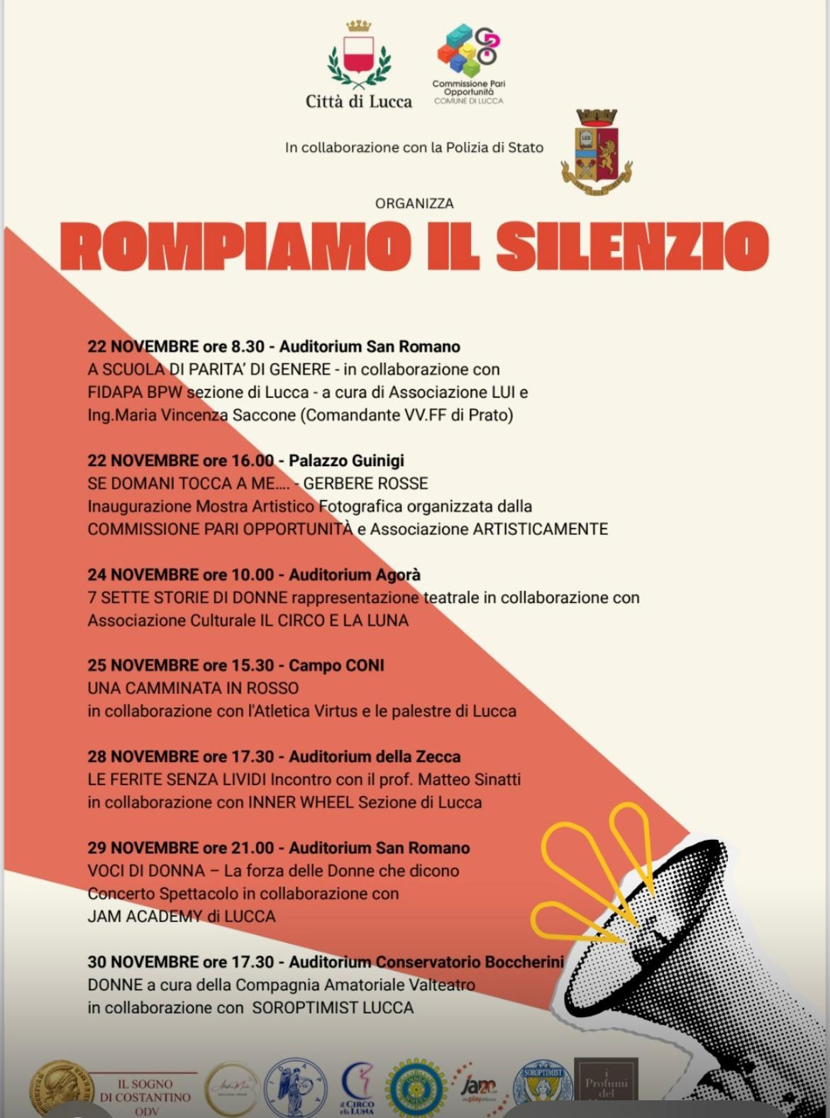 Organizzare eventi di questo tipo richiede dedizione, cura e un forte senso di responsabilità verso il territorio. Per questo il Club desidera ringraziare tutte le socie che hanno contribuito alla realizzazione dell’iniziativa e tutte le persone che hanno partecipato con sensibilità e rispetto; in modo particolare il comune di Lucca con la dottoressa Testaferrata e la rappresentante delle pari opportunità Simoncelli.
