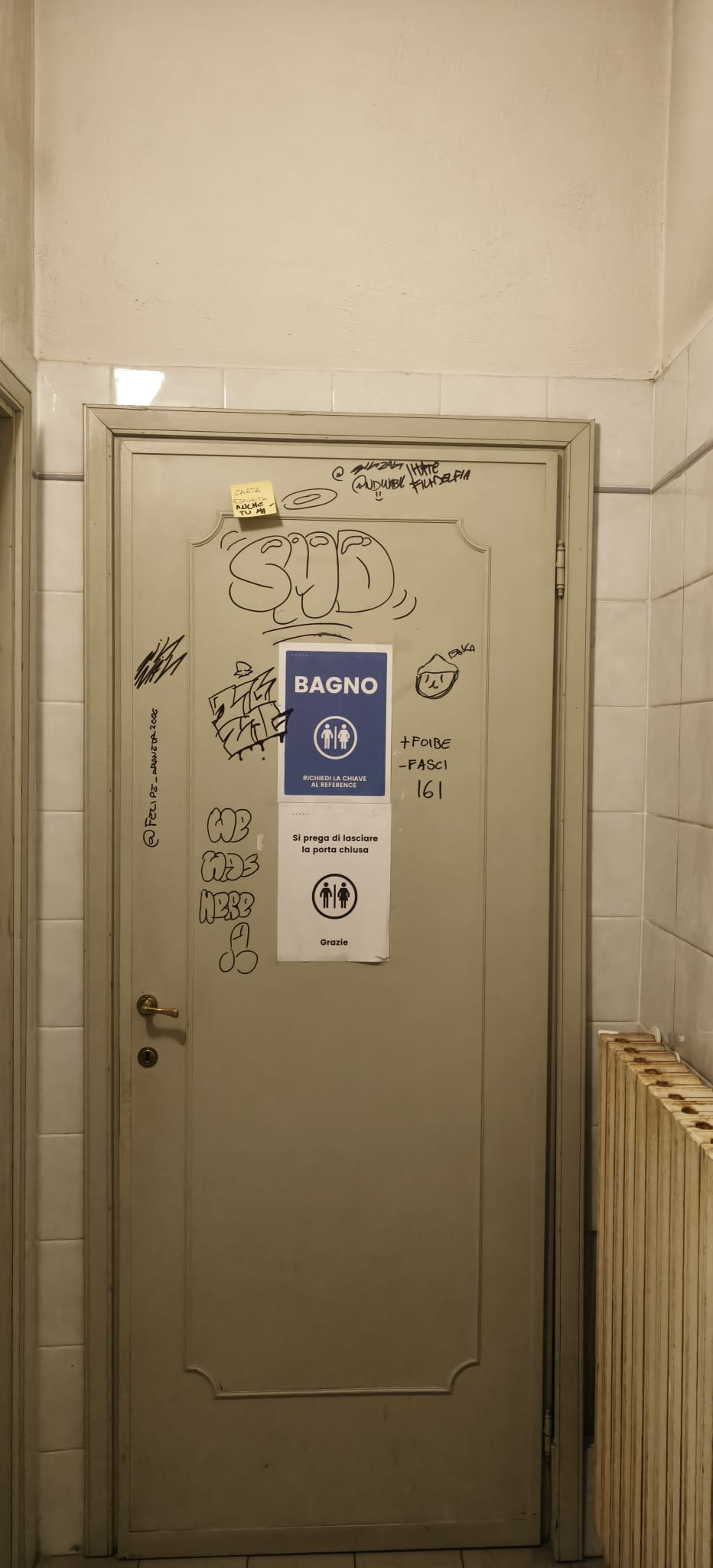 Oggi al centro culturale (sic!) Agorà di piazza de' Servi, dove era stata convocata la riunione del consiglio comunale dedicata al Giorno del ricordo, qualcuno ha avuto impellente bisogno di recarsi al bagno ed ecco la sorpresa cui si è trovato di fronte. Un bell'esempio di antifascismo non c'è dubbio.