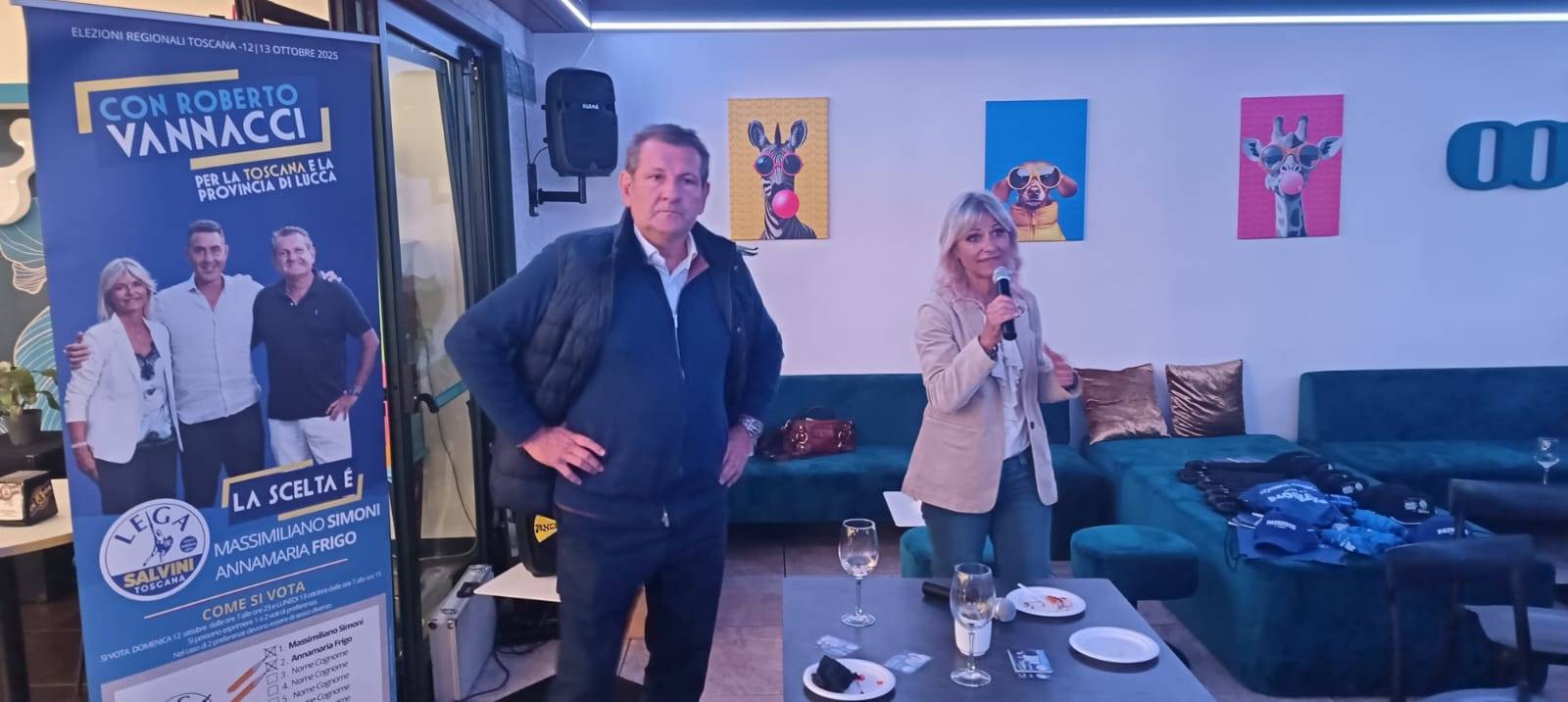 La vera battaglia sarà, quindi, la sicurezza della nostra identità e, in consiglio regionale, mi batterò ogni giorno per questo”. Annamaria Frigo ha poi concluso con un appello al voto, sottolineando l’importanza di questo diritto-dovere. “Votare per un cambiamento in Toscana è importantissimo – ha sottolineato. La Toscana legifera su temi fondamentali della nostra vita che sono la formazione, la sanità e la sicurezza. Rivolgo anche un appello a tutte le donne perché vadano a votare. Alle ultime elezioni amministrative solo il 40% ha votato, e questo è un dato che mi lascia molto perplessa. Abbiamo molte battaglie da combattere e sarà necessario essere messe in grado di poterle affrontare. Per questo ci sarà bisogno di donne che combattano per questi motivi, non solo in Regione Toscana ma anche in Parlamento. Se vogliamo combattere queste battaglie e far sentire la voce di noi donne, dobbiamo andare a votare e portare la nostra presenza nei luoghi dove si decide”. Per finire, alcune indicazioni sulla modalità del voto. Massimiliano Simoni ed Annamaria Frigo sono entrambi nella lista della Provincia di Lucca sotto il partito della Lega. La lista è composta da 8 nominativi, già scritti, che vede come capolista, al numero 1, Massimiliano Simoni e, al numero 2, Annamaria Frigo. Basterà fare una croce sul numero uno e due e, eventualmente, anche su quella del Partito. Tutti i voti della coalizione andranno al candidato del centrodestra della Regione Alessandro Tomasi, attualmente sindaco di Pistoia.