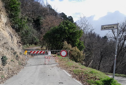 Traversa Via di Tramonte chiusa al traffico per frana, impossibile accedere alla chiesa San Martino e al cimitero della frazione, ordinanza comunale n.3042 del 26 novembre 2025 e dopo le ultime piogge situazione peggiorata;