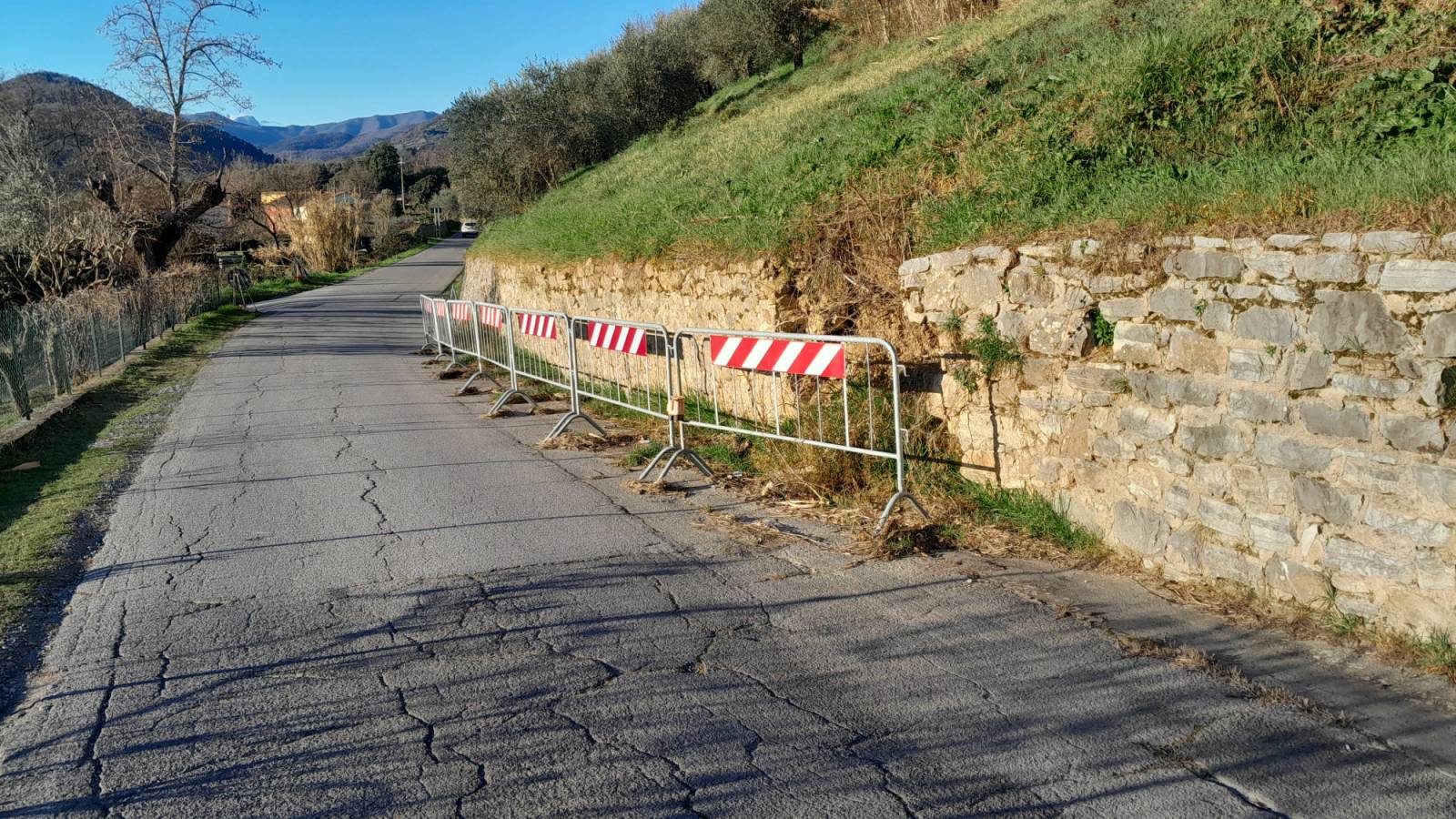 Via delle Ville zona San Pancrazio, da più di due anni, traffico a senso alternato per pericolo cedimento muro a secco di contenimento terrapieno;