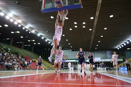 In una partita maschia e senza esclusione di colpi, il Basket Club Lucca conquista la sedicesima vittoria consecutiva e, con il punteggio di 94 a 85, liquida la pratica College Borgomanero senza mai andare in grosso affanno, tolti gli ultimi minuti del match quando i piemontesi si sono fatti pericolosamente sotto (- 5) ma, stringendo le maglie difensive, hanno saputo frenare il rientro degli ospiti, grazie anche all’esperienza e ad un tasso tecnico superiore che alla fine hanno fatto la differenza. Per il recupero della 27^ giornata del Campionato di Serie B Interregionale, al Palatagliate di Lucca va in scena la sfida tra i padroni di casa del Basketball Club Lucca ed il College Borgomanero. I ragazzi di coach Di Cerbo, che attualmente occupano la sesta piazza della classifica e che sono ormai quasi certi di disputare i play off, scendono a Lucca dopo due vittorie consecutive e vantano il miglior attacco del girone ma anche la peggior difesa. I biancorossi di coach Olivieri, primi della classe, cercheranno la sedicesima vittoria consecutiva per blindare il primo posto e portarsi a più quattro sulle rivali senesi Mens Sana e Costone, prima delle ultime due giornate di campionato. Per la palla a due coach Olivieri schiera Pichi, Valentini, Dubois, Drocker e Trentin. Per Lucca la aprono Trentin e Dubois, cui risponde Martino con un gioco da tre. A metà del primo quarto il punteggio è sul sull’11 a 7 per il BCL, grazie ai primi due punti di Drocker. Per il College sono Benzoni e Lastella a tenere la propria squadra ad uno scarto di un solo punto, che diventa però un vantaggio di più cinque, sempre con Benzoni, che ha fatto sentire in modo molto deciso il suo ingresso in campo. Una schiacciata ed un magistrale tiro dalla lunga, sulla sirena, di un caldissimo Gianni Dubois chiudono il primo quarto sul punteggio di 23 a 21 per il BCL, ma Borgomanero c’è. Con un Dubois ispirato e Benzoni fuori, dopo due minuti del secondo quarto, Lucca si porta al massimo vantaggio sul 33 a 23. E con una difesa aggressiva, necessaria contro l’esuberanza dei piemontesi, e un contropiede efficace, dopo 4’, i ragazzi di Olivieri sono avanti sul 38 a 23. Il BCL spende falli e Borgomanero è costretta dalla lunetta ma manca un po' di precisione (3 su 6) e così, a 2 minuti dalla sirena, grazie ad un Drocker chirurgico dalla distanza, Lucca si porta avanti sul 49 a 33. Con Pichi a segno dalla distanza, per i tre punti, e Borgomanero che non finalizza sulla sirena, si va all’intervallo lungo sul punteggio di 54 a 38 con un parziale di 31 a 17 per Barsanti e compagni. Da segnalare che, durante l’intervallo della partita, il presidente del BCL Matteo Benigni ha consegnato un riconoscimento a Matteo Brunori, presidente della Lucchese Calcio, neo promossa in Serie D e presente in tribuna con tutta la squadra assieme all’allenatore Sergio Pirozzi.  Inizio di terzo quarto assai contratto per entrambe le compagni ma è Borgomanero che prova ad accorciare e, con un gioco da tre di capitan Gaiola, dopo 4’, si porta sul meno 11. La partita è fisica e giocata a ritmi alti da entrambe le squadre, tanto concitata quanto fallosa ma il BCL riesce a tenere Borgomanero a debita distanza e, alla fine del terzo quarto, il punteggio recita 74 a 61, con Landucci a segno da sotto canestro e Benzoni impreciso sul fil di sirena. Il quarto quarto inizia sulla falsariga dei primi tre, con gioco maschio, falli per entrambe le squadre e Lucca sempre avanti nel punteggio ma senza riuscire a dare lo strappo decisivo cosicché, dopo 4’, il punteggio è fissato sull’80 a 71 per i padroni di casa. Borgomanero si porta sul meno 8 a tre minuti dalla sirena e Dubois, con un imprevisto 0 su 4 dalla lunetta, permette a Borgomanero di rifarsi sotto sul meno 5. Ma è ancora Dubois, questa volta con mente fredda e mano calda, e con 45 secondi da giocare, che dalla lunetta mette a segno due tiri liberi che profumano di vittoria. Borgomanero sbaglia il possesso che poteva lasciare ancora una porta aperta al recupero e così, con Del Debbio preciso dalla lunetta tanto quanto Drocker, la partita si chiude sul 94 a 85, risultato che vale la sedicesima vittoria consecutiva per il BCL ed il vantaggio di 4 punti sulle immediate inseguitrici a due giornate dalla fine. Per gli ospiti ottime prove di Benzoni (18), Buttiglione (17) e capitan Gaiola (15). Per i biancorossi sono ben 5 i giocatori in doppia cifra e cioè Dubois (24), Drocker (21), Del Debbio (13), Trentin (12) e Pichi (10). Il Basket Club Lucca sarà di nuovo impegnato sul parquet del Palatagliate domenica 19 aprile quando a fargli visita, nell’ultima partita casalinga della regular season, sarà il Grantorino Basketball Draft.