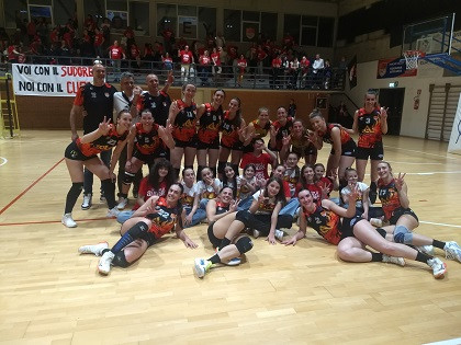 Ala Palacavanis il derby della piana lucchese non ha storia, il Porcari travolge 3-0 la Nottolini ( 25-16/ 25-23/ 25-19) interrompendo la serie di quattro vittorie consecutive di Catani e compagne e riscattando la sconfitta dell' andata. Derby già in ghiacciaia dopo il primo set con la squadra di casa sostenuta da un pubblico caloroso che si porta sul 7-1 dimostrando maggiore energia e intensità con una combinazione di fattori fisici ma soprattutto tattici. Viceversa le bianconere non riescono ad innestare i loro meccanismi di gioco per i diversi errori in regia, attacco e difesa. Un attacco di Giulia Mannucci sprona le sue compagne alla reazione mettendo a segno il punto del 12-7 ma un ace di Ginevra Norci riporta Porcari a +7 (14-7). Fra le bianconere quella che non vuol cedere è soprattutto il suo capitano Benedetta Catani attaccando palloni "sporchi" e trasformandoli in punti vitali mettendone a segno due consecutivi che riportano la sua squadra a -7 (18-11). Ma il finale della prima frazione di gioco è ancora tutto di marca rossonera con la sua regista Giulia Cerri che mette a segno anche un ace (21-12). Una superlativa Elena Casini padroneggia in attacco (23-14), Ilaria Battellino prende ogni palla che penetra dal muro e Chiara Piccini chiude il set 25-16.