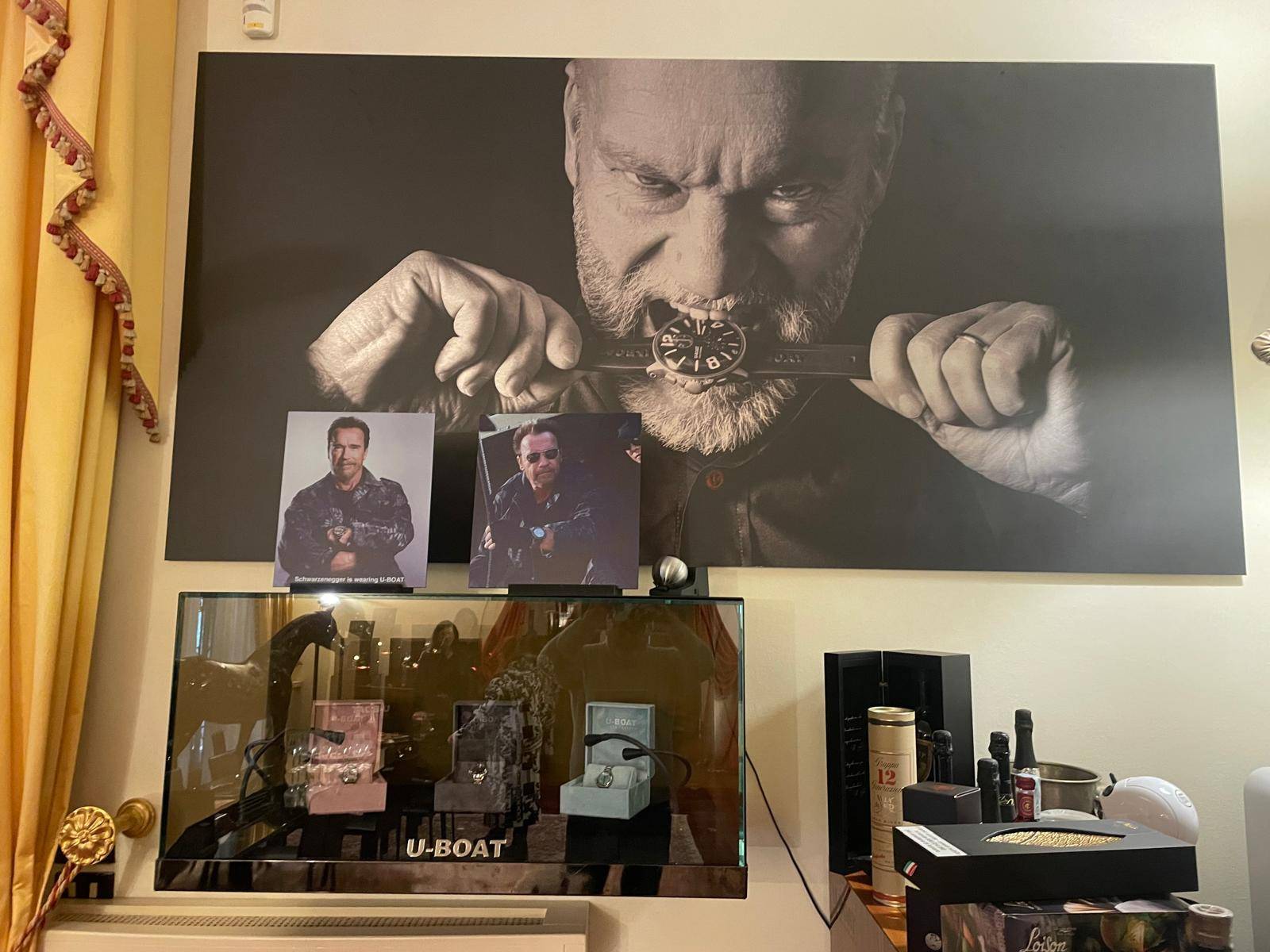 Il mitico attore ex campione di culturismo ed ex governatore della California ha ribadito la sua fedeltà agli orologi creati da Italo Fontana in quel di Gragnano a Capannori. Al polso, durante un allenamento per lo sviluppo dei muscoli bicipiti, un U-Boat acquistato a Los Angeles del valore di 29 mila euro