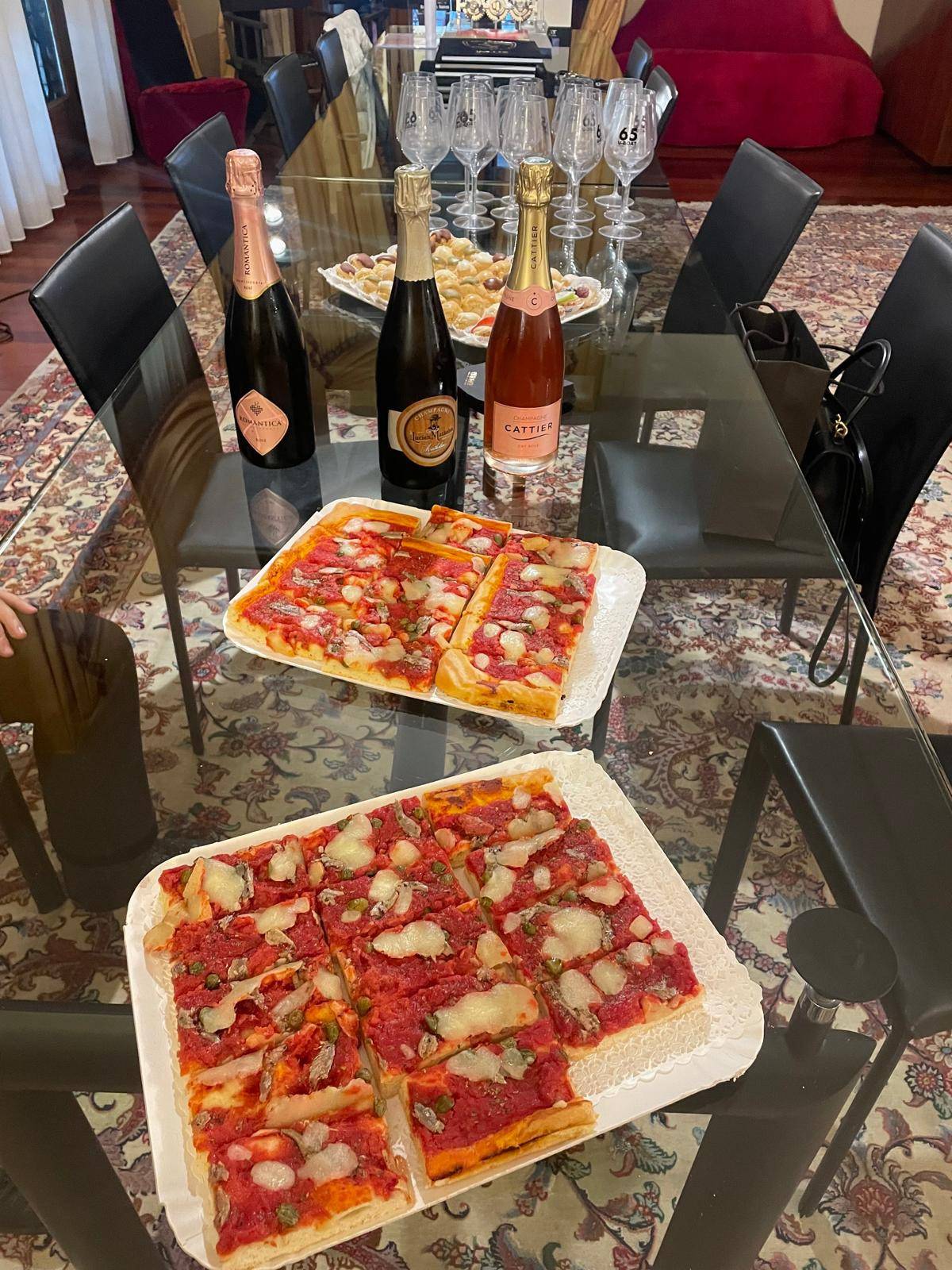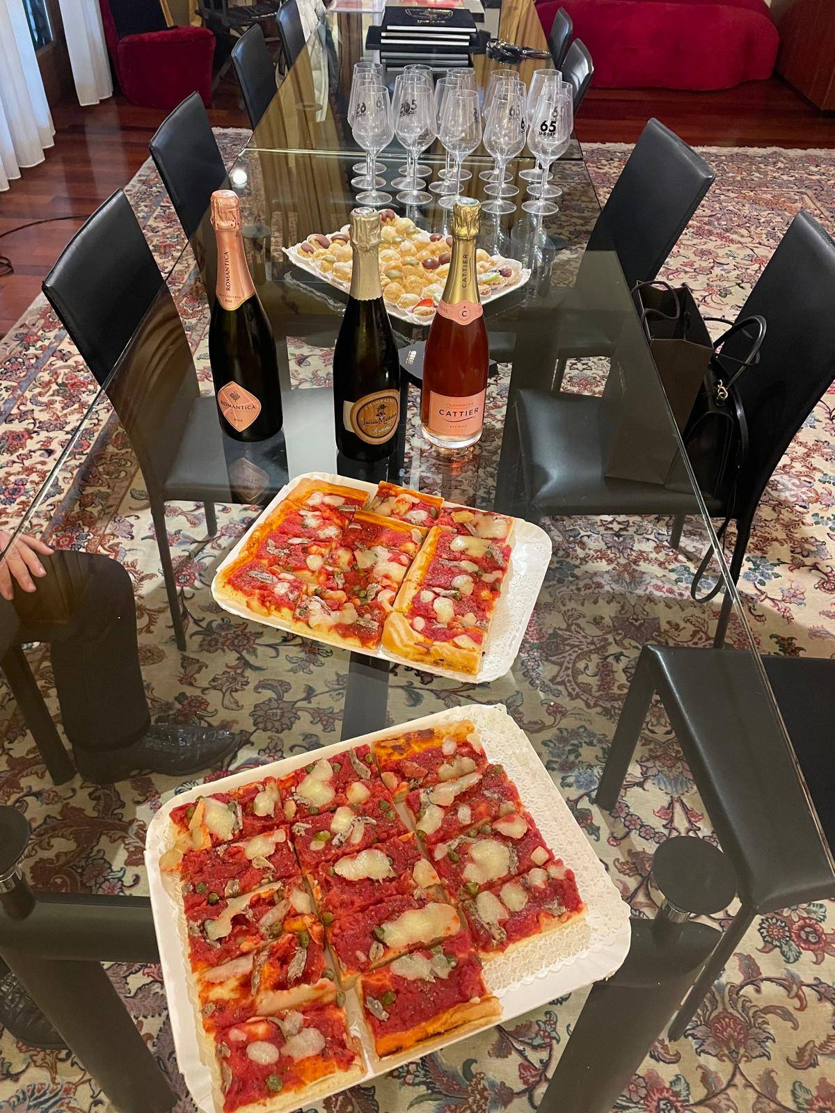 Questa volta niente ristoranti più o meno d'élite. Bastano i formaggi della Cacioteca di Franco Pieracci, il suo prosciutto di cinta senese, i canestrini dell'Ortofrutta Lucca Centro di piazza San Salvatore e una fantastica magnum di champagne Philipponnat. Oltre, ovviamente, ad un'atmosfera complice e magica in quel di Gragnano