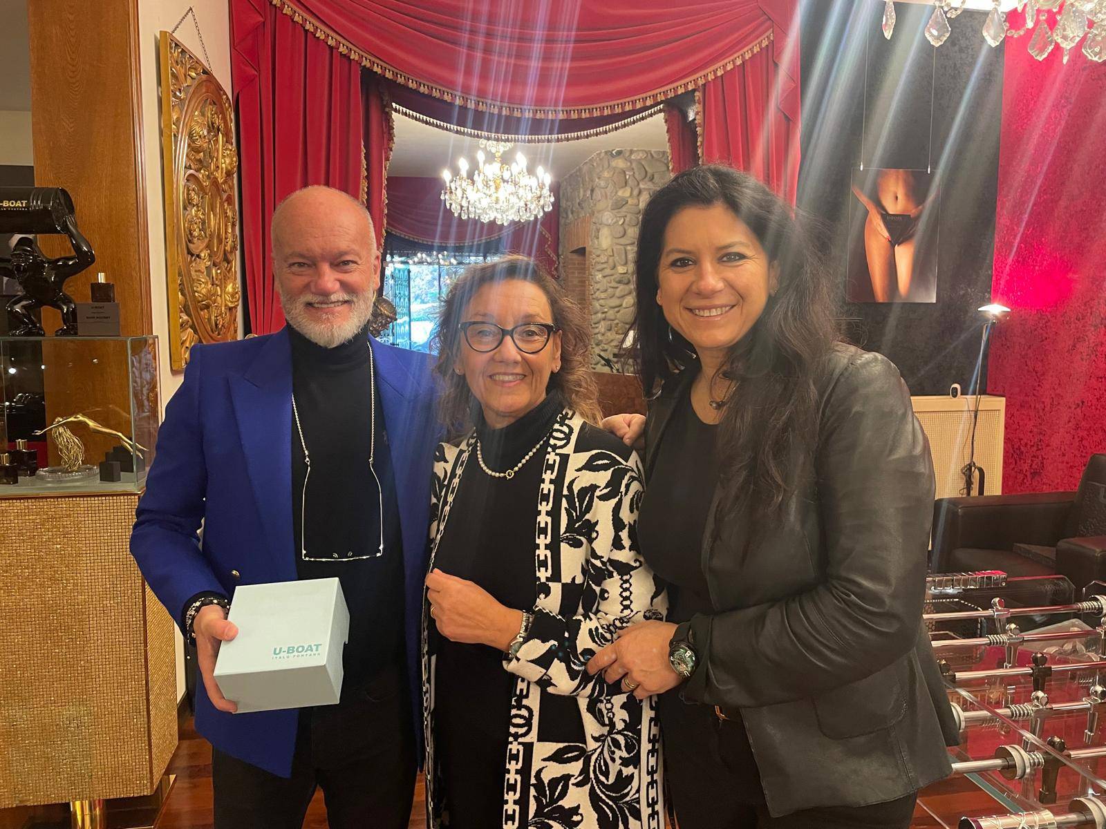 In questo anno di grazia 2025 la squadra e lo staff di U-BOAT, il prestigioso marchio di orologi fondato da Italo Fontana esattamente 25 anni fa, si sono riuniti nel salone di rappresentanza della magnifica villa di Gragnano, per salutare amici e amiche di Lucca. Con i vassoi salati e dolci della pasticceria Pinelli di Ademaro e Helen Cordoni e alcune bottiglie di Franciacorta e Champagne portate dal giornale on line www.inluccaveritas.it si è tenuto un piccolo evento enogastronomico che ha celebrato un'amicizia nata alcuni anni fa e cresciuta nel corso del tempo. Per Fontana, affiancato dai suoi dipendenti e dalla responsabile della comunicazione Laura Cagnoni, è già tempo di prepararsi al salone internazionale di Ginevra che si terrà ad aprile e che vedrà in scena le case di orologi più famose al mondo. U-BOAT sarà l'unico marchio italiano. Sono contento di questo appuntamento prenatalizio - spiega Italo Fontana - che ci consente di fare gli auguri a tutta la città di Lucca a 25 anni dalla nascita di questo marchio. Se si pensa a quando siamo partiti, beh, c'è stata davvero una crescita esponenziale. Io sono cresciuto al Piaggione e conosco benissimo la città di Lucca dove la mia famiglia ha avuto un negozio di abbigliamento. Amo questa città e farei qualunque cosa per renderla migliore. Davvero un augurio speciale a tutti coloro che vi abitano e che, come me, ne sono innamorati.